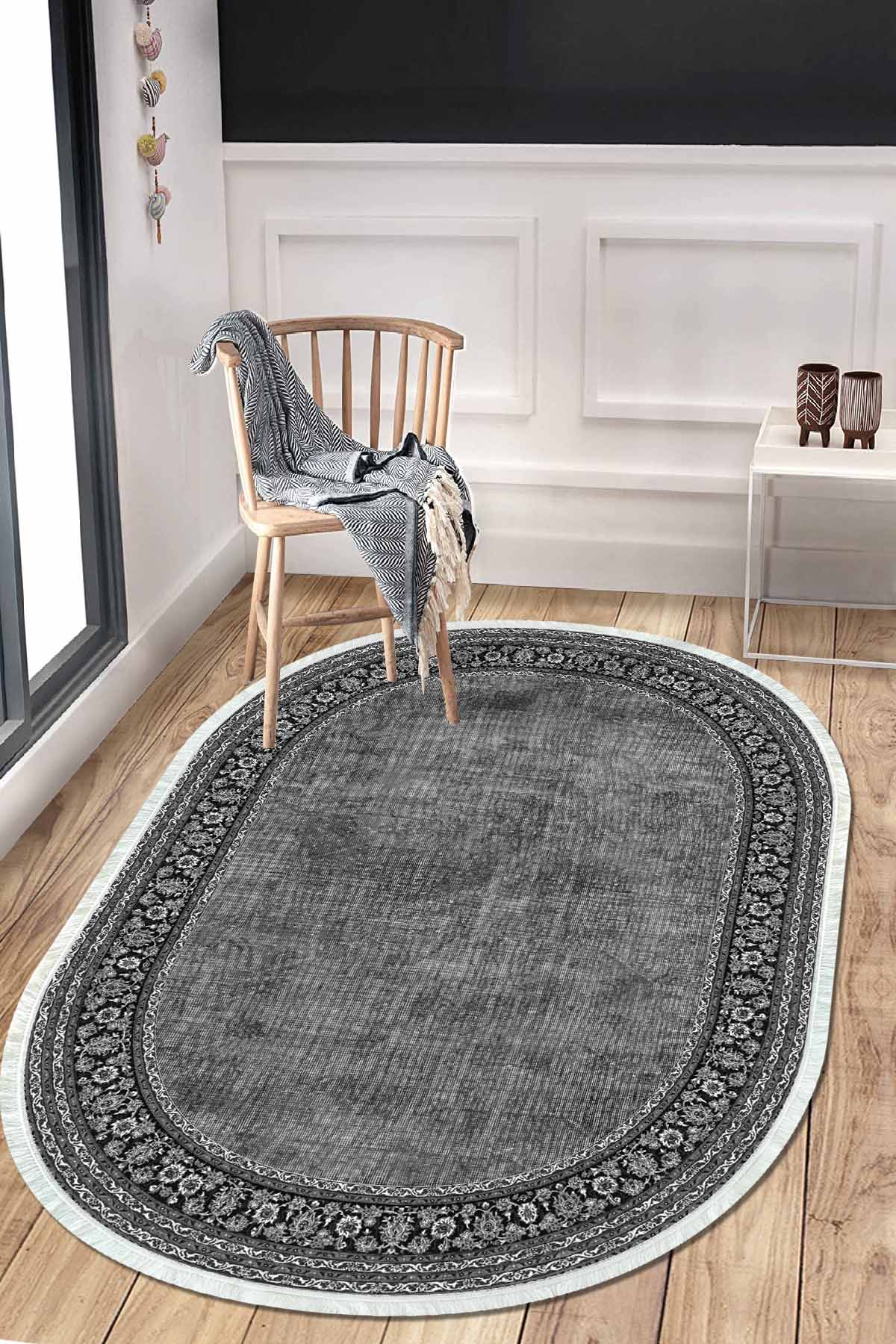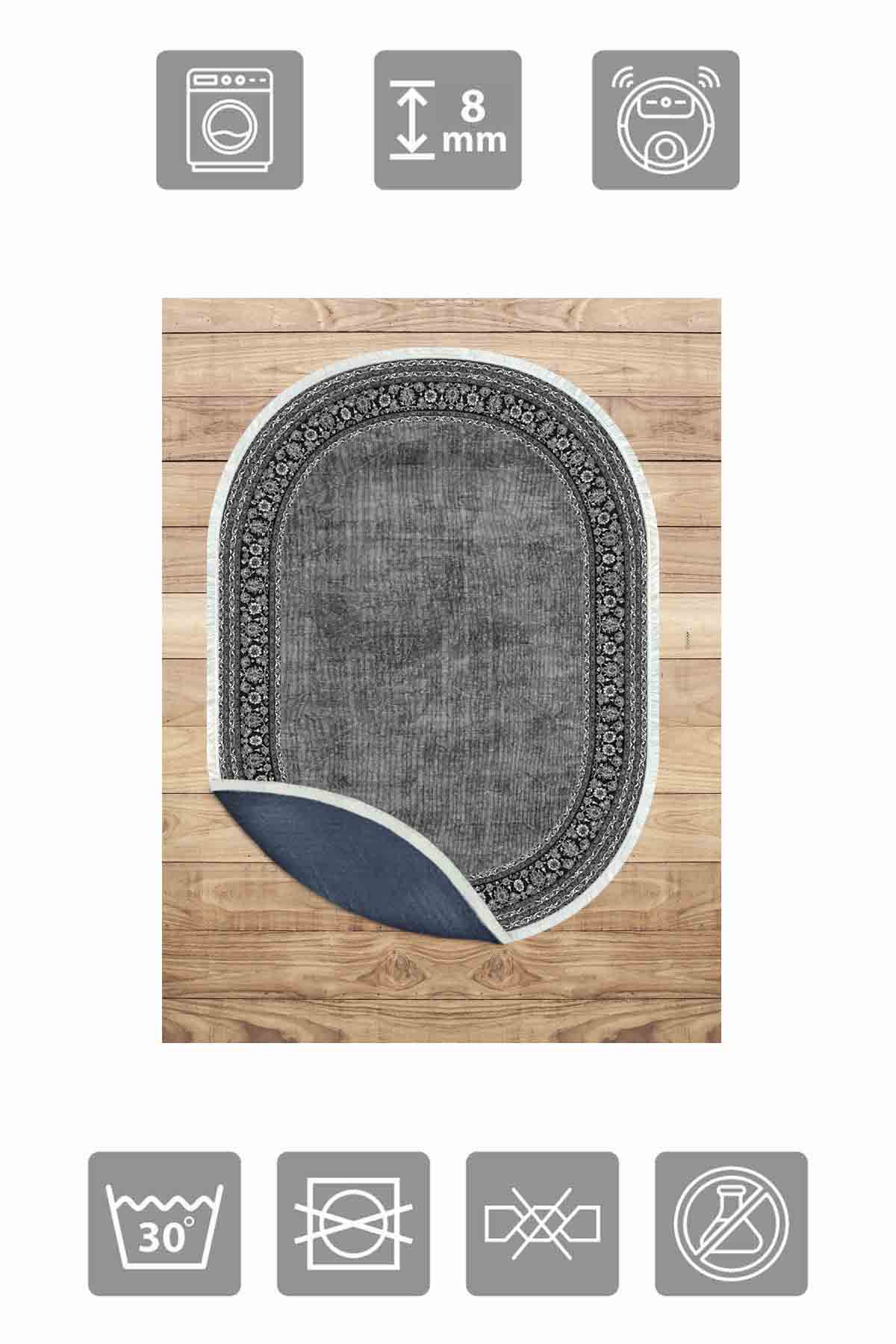 Birkilim Oval Yıkanabilir İpeksi Kaymaz Taban Dekoratif Halı | MLN-IP-O-HT-127