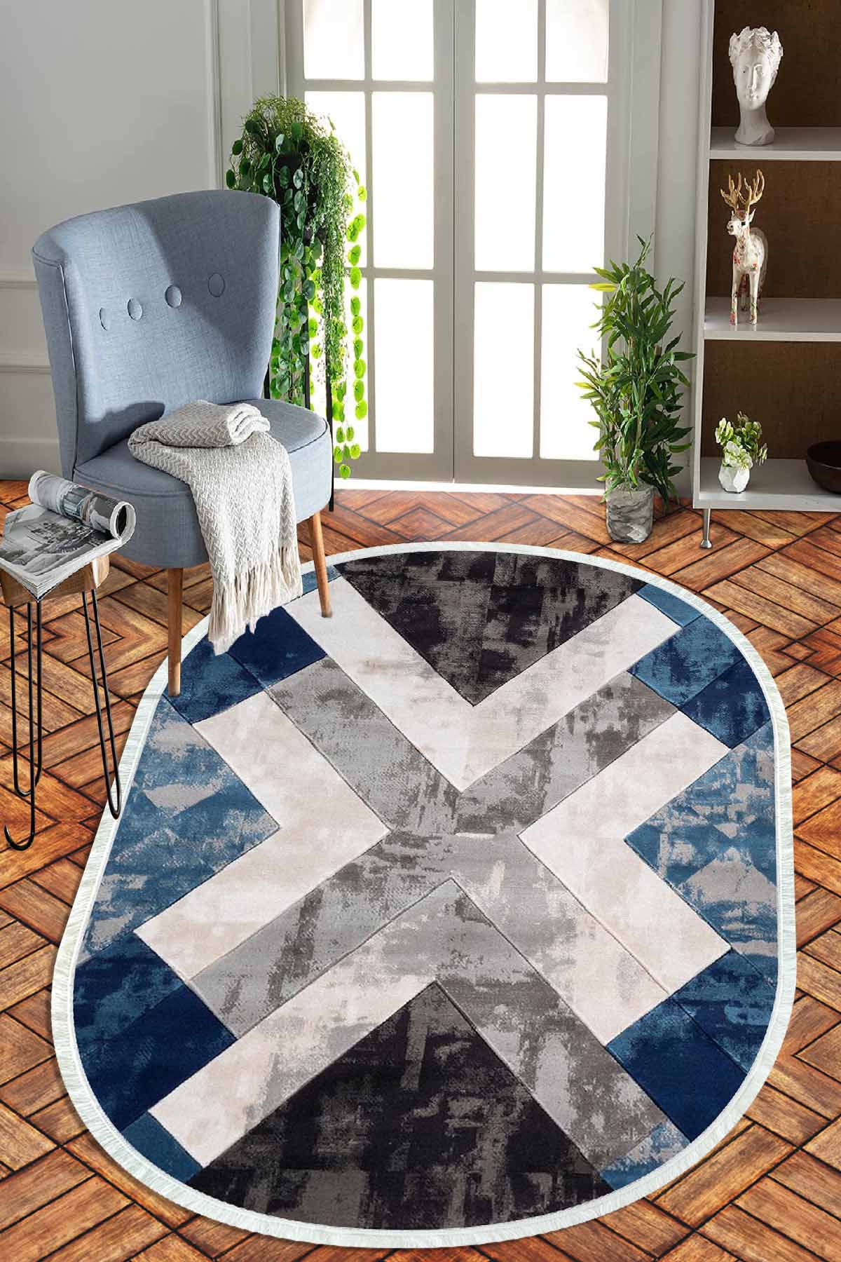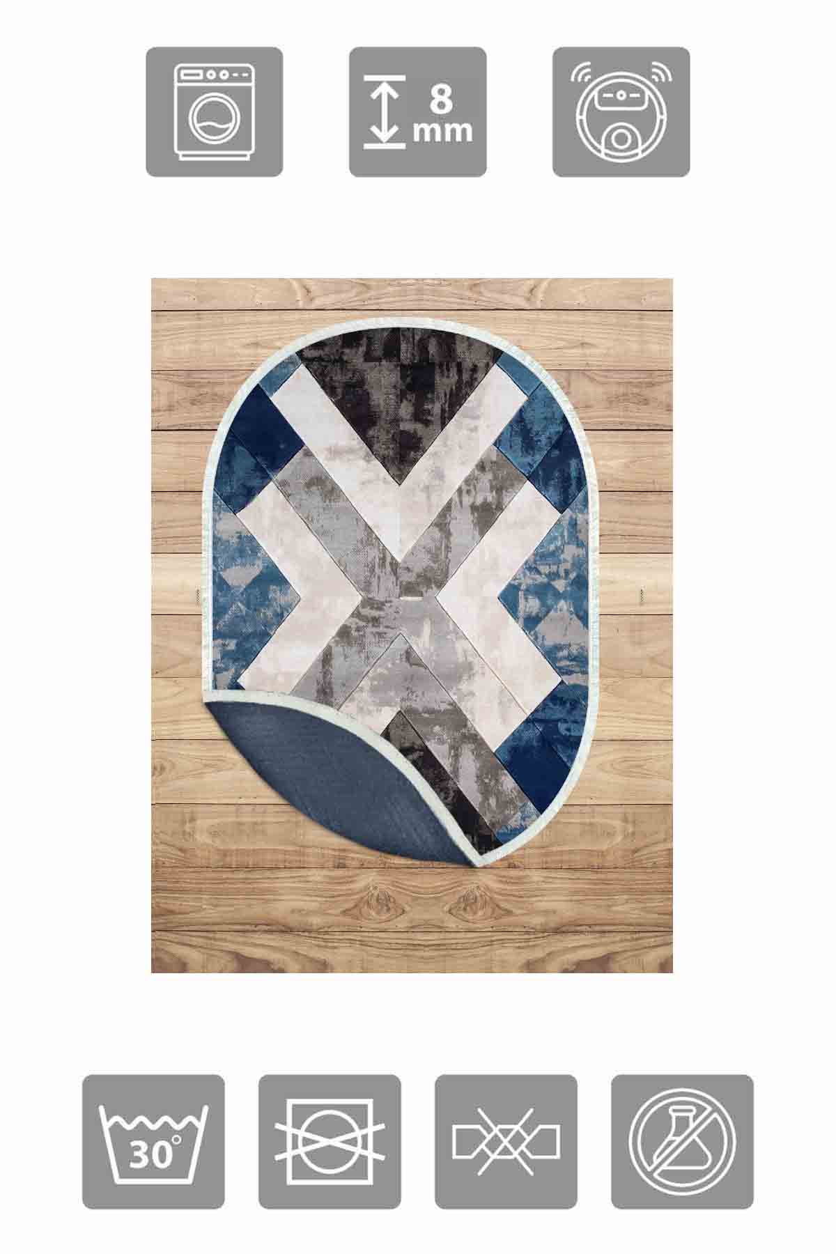 Boyutlar & Teslimat: 1x Birkilim Oval Yıkanabilir İpeksi Kaymaz Taban Dekoratif Halı | MLN-IP-O-HT-1389