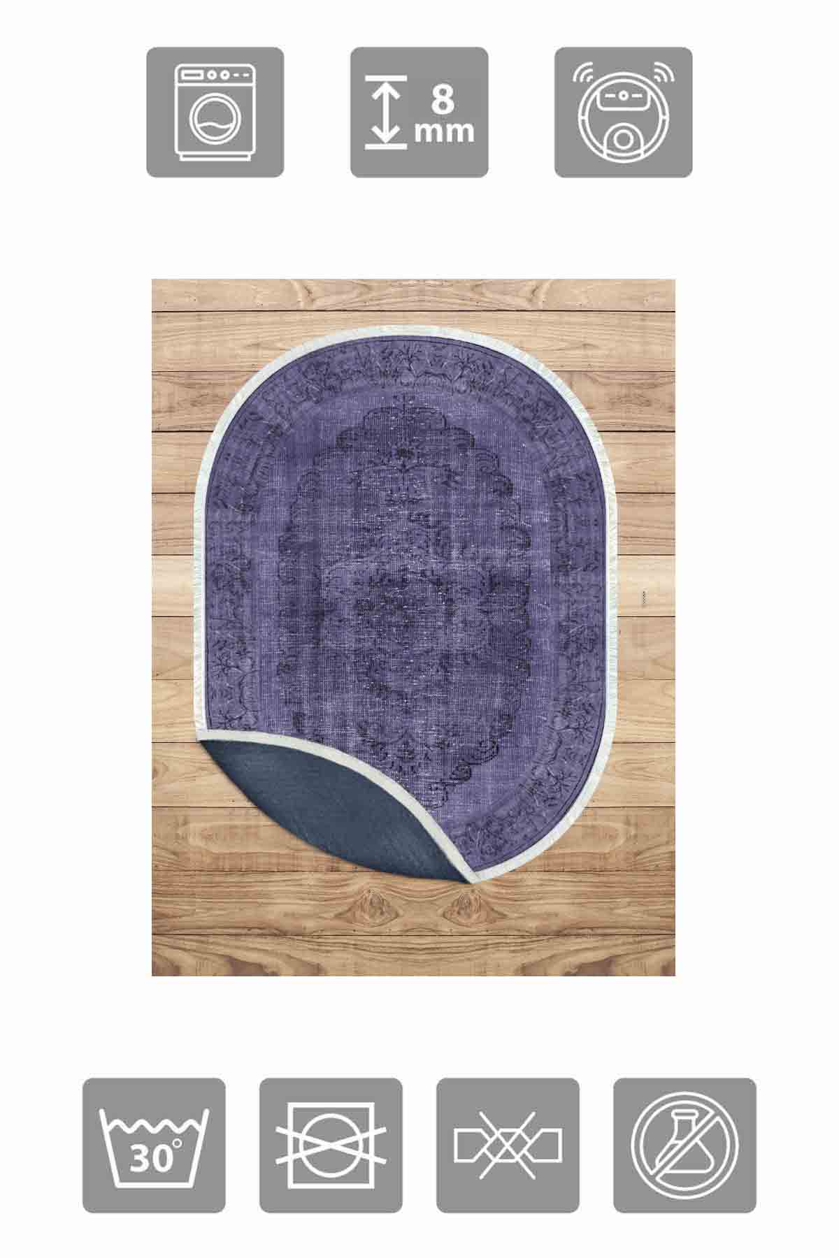 Boyutlar & Teslimat: 1x Birkilim Oval Yıkanabilir İpeksi Kaymaz Taban Dekoratif Halı | MLN-IP-O-HT-148