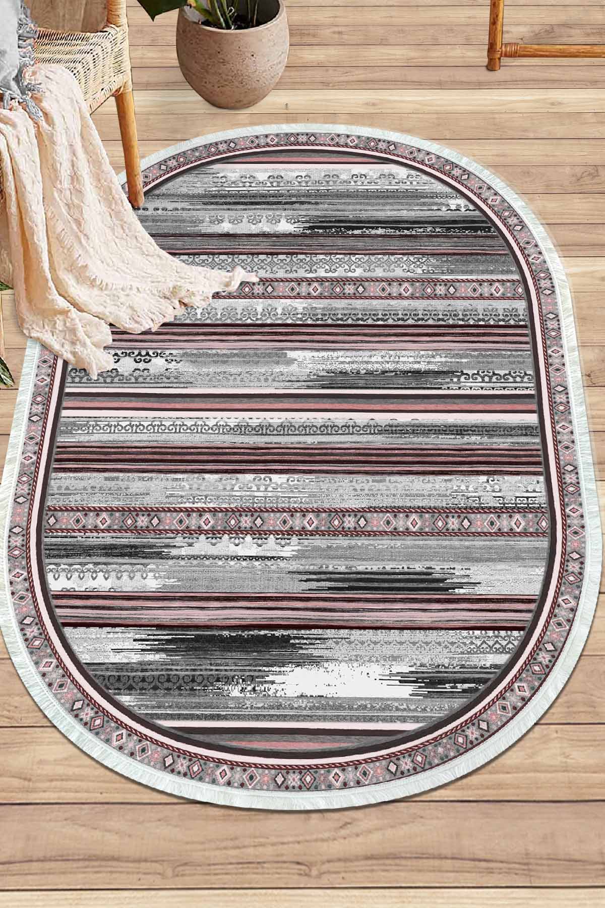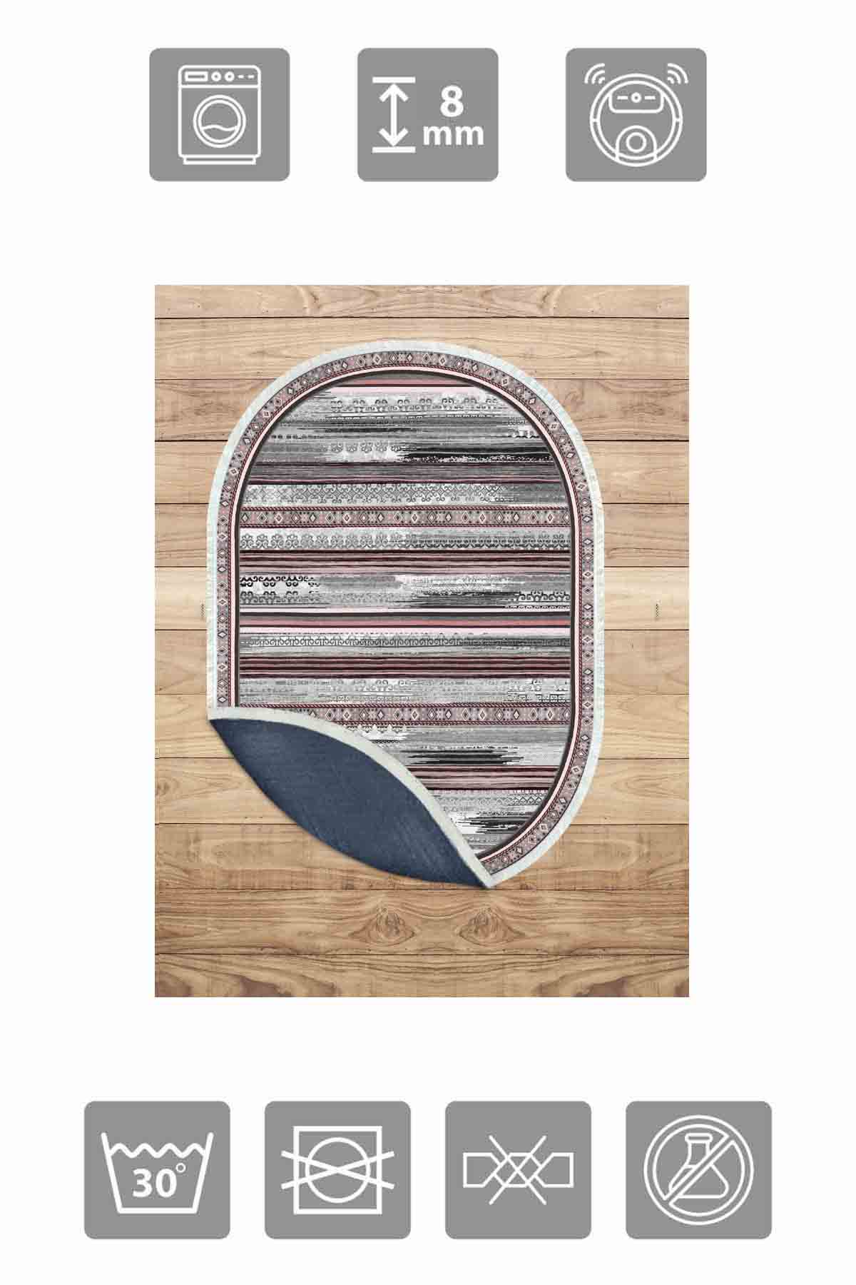 Boyutlar & Teslimat: 1x Birkilim Oval Yıkanabilir İpeksi Kaymaz Taban Dekoratif Halı | MLN-IP-O-SD-240