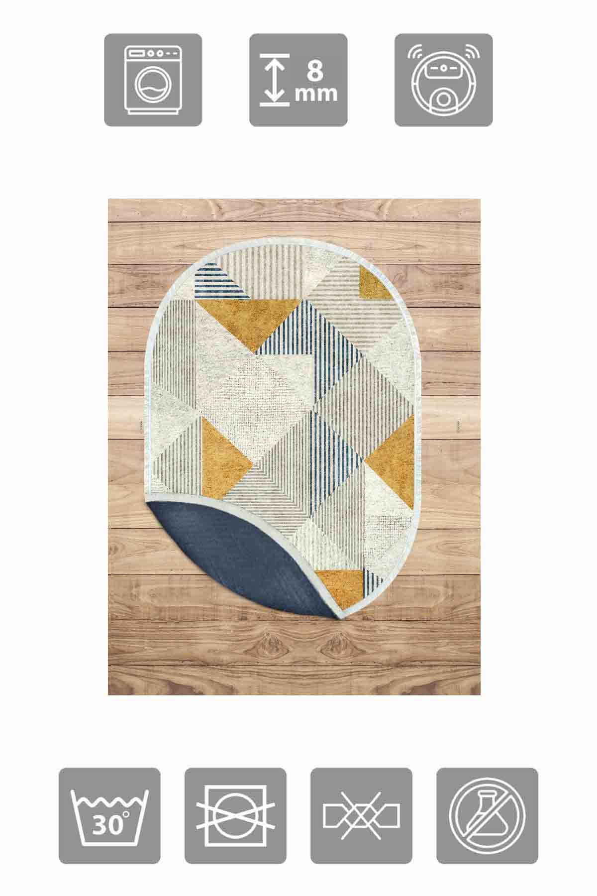 Boyutlar & Teslimat: 1x Birkilim Oval Yıkanabilir İpeksi Kaymaz Taban Dekoratif Halı | MLN-IP-O-SD-340