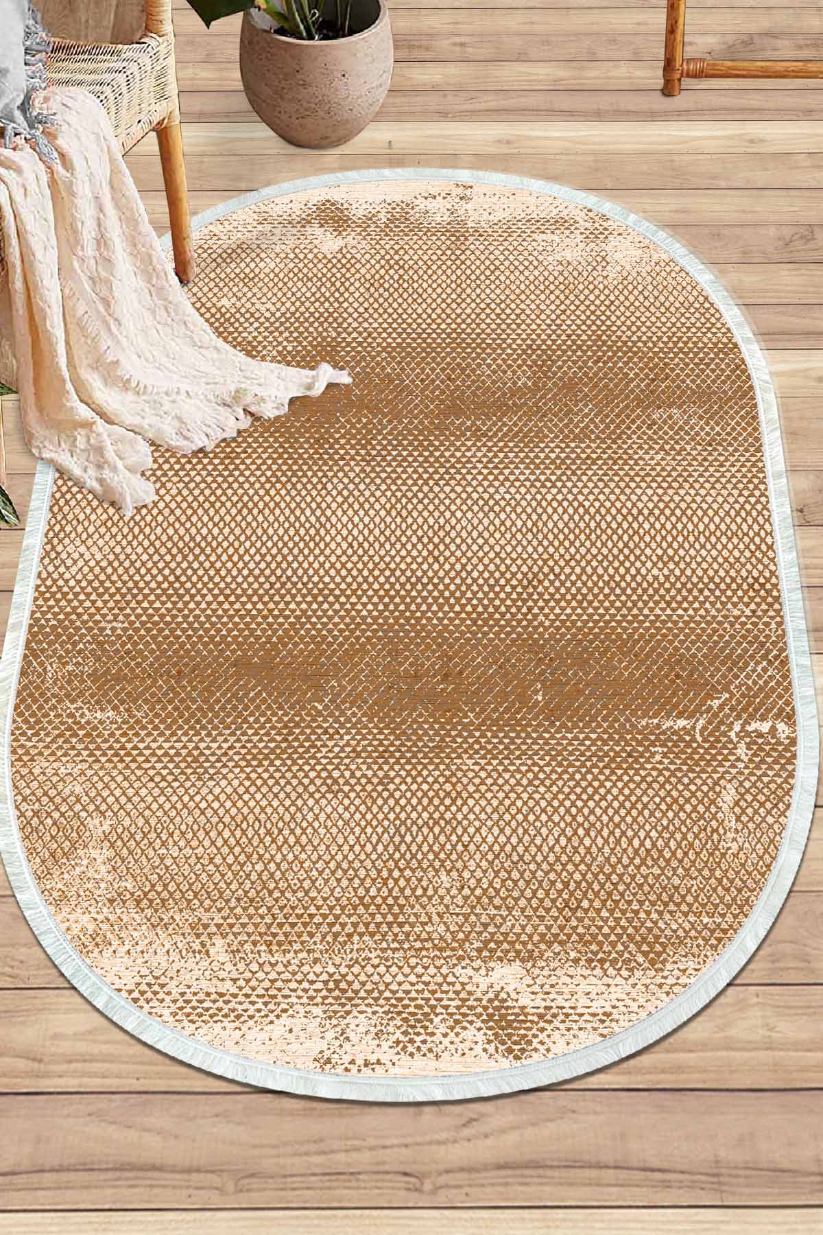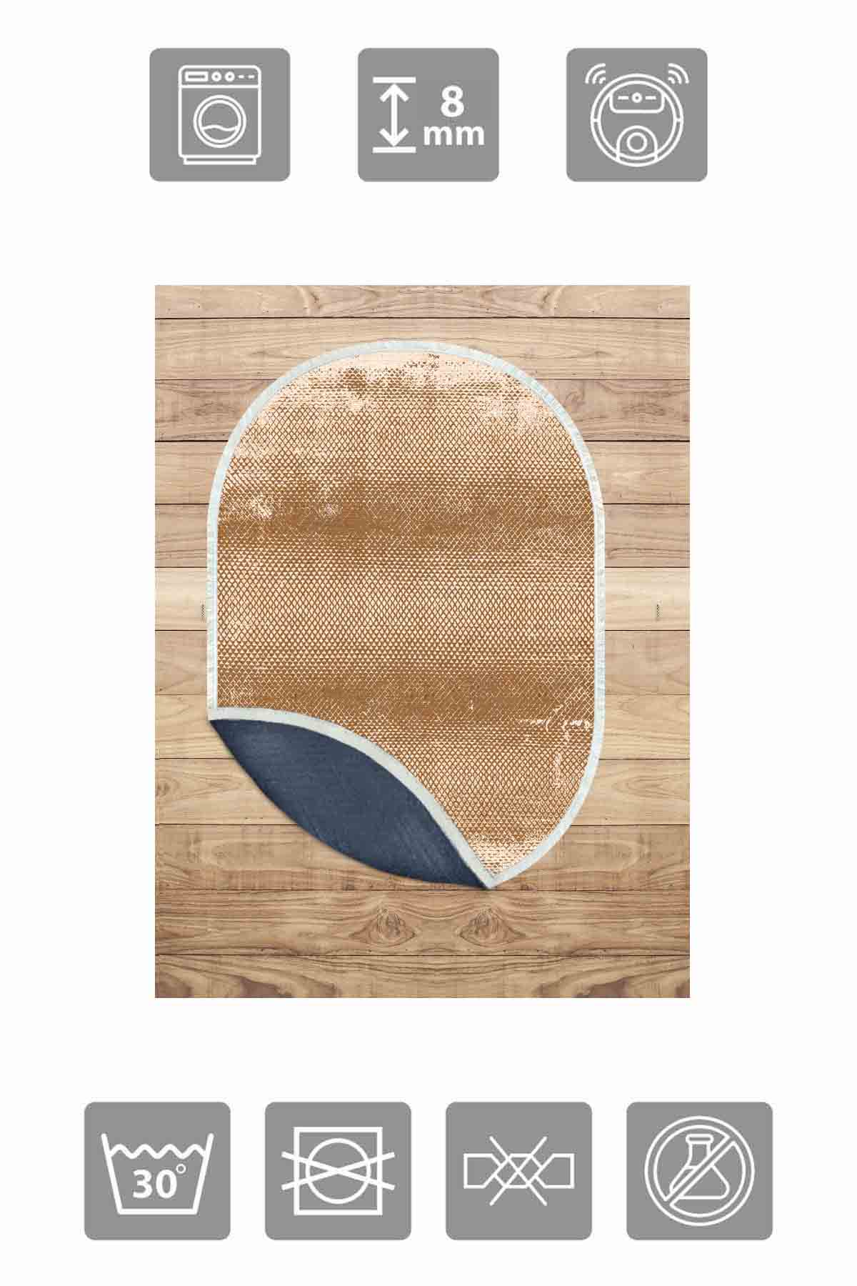 Boyutlar & Teslimat: 1x Birkilim Oval Yıkanabilir İpeksi Kaymaz Taban Dekoratif Halı | MLN-IP-O-SD-343