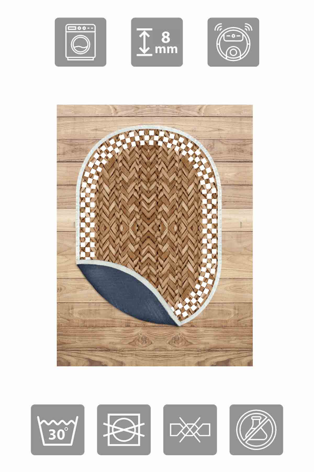 Boyutlar & Teslimat: 1x Birkilim Oval Yıkanabilir İpeksi Kaymaz Taban Dekoratif Halı | MLN-IP-O-SD-360