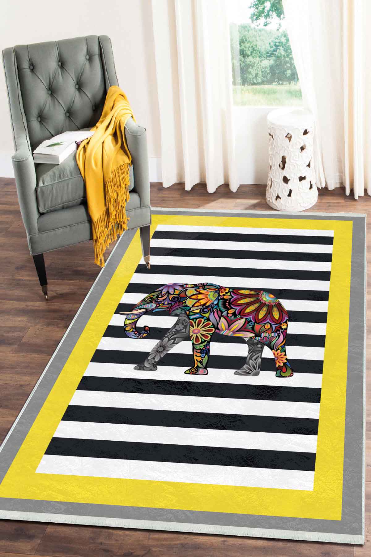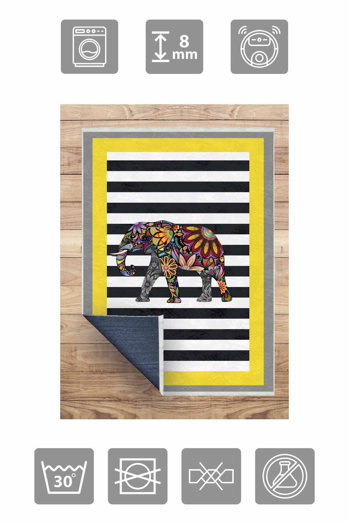 - Dijital baskılı dekoratif halıdır.