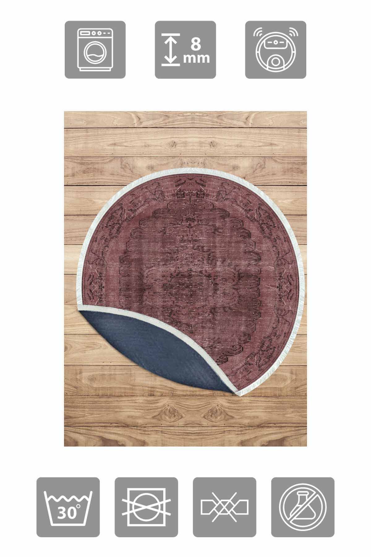 Boyutlar & Teslimat: 1x Birkilim Yuvarlak Yıkanabilir Dekoratif Halı İpeksi Kaymaz Taban | MLN-IP-YU-HT-1001
