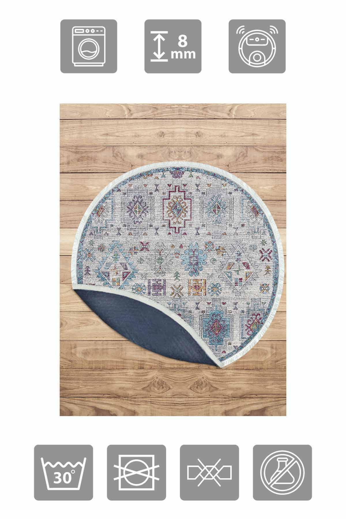 Boyutlar & Teslimat: 1x Birkilim Yuvarlak Yıkanabilir Dekoratif Halı İpeksi Kaymaz Taban | MLN-IP-YU-HT-756