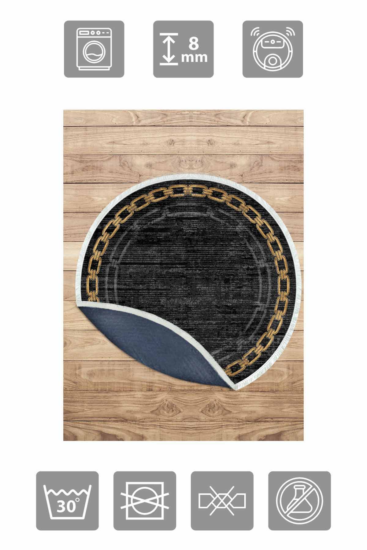Boyutlar & Teslimat: 1x Birkilim Yuvarlak Yıkanabilir Dekoratif Halı İpeksi Kaymaz Taban | MLN-IP-YU-HT-901