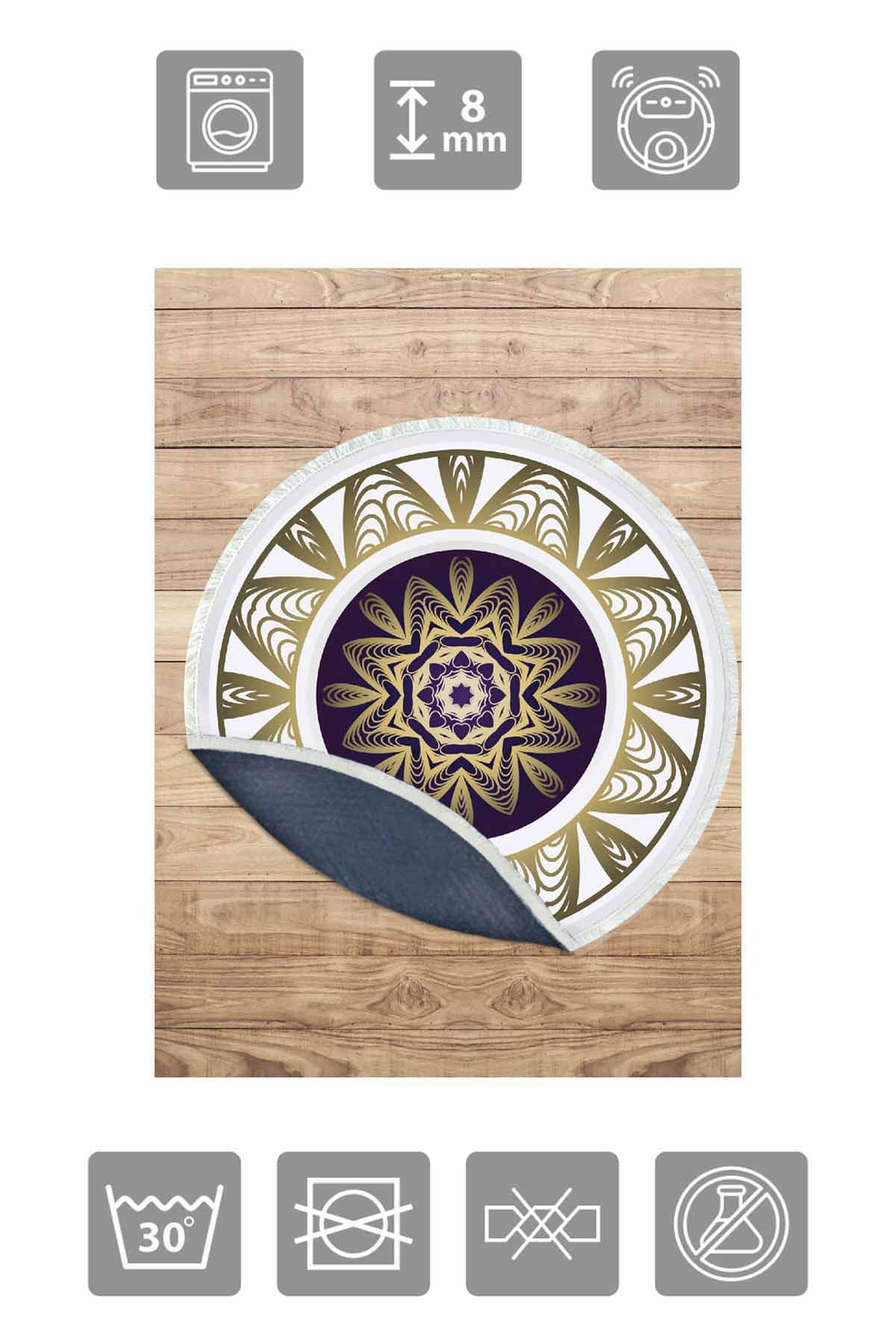 Boyutlar & Teslimat: 1x Birkilim Yuvarlak Yıkanabilir Dekoratif Halı İpeksi Kaymaz Taban | MLN-IP-YU-SD-263