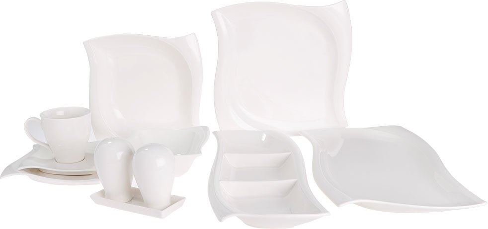 Boyutlar ve Teslimat: 1x Bricard 66 Parça Porselen Yemek Takımı S-Form | Beyaz | 12 Kişilik I