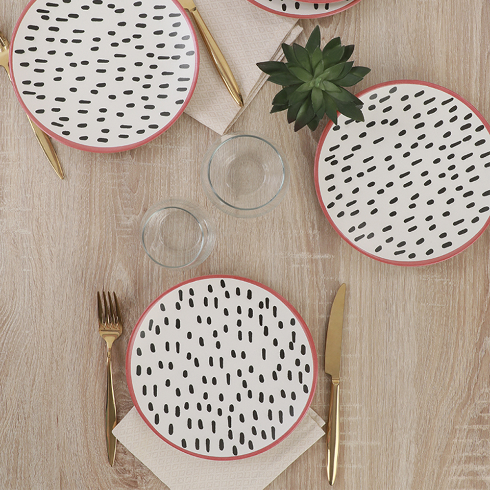 Misafirlerinize lezzetli ikramlarınızı keramika brush dots pasta tabağı ile yapın... Masanız için kullanışlı, her biri özel tasarıma sahip olan bu ürünler, sunumlarınızı bir sanata çevirerek hem göz zevkinize hem de damak zevkinize hitap ediyor. Lezzetli dolu hediyeler vermenizi sağlayacak bu pasta tabakları sevdiklerinizi özel hissettirecektir.