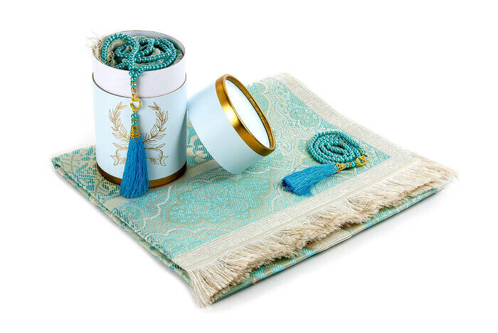 Canım Babama Seccadeli ve İnci Tesbihli Özel Silindir Kutulu Set - Mavi Renk