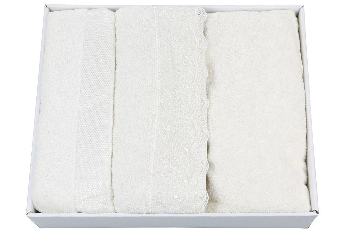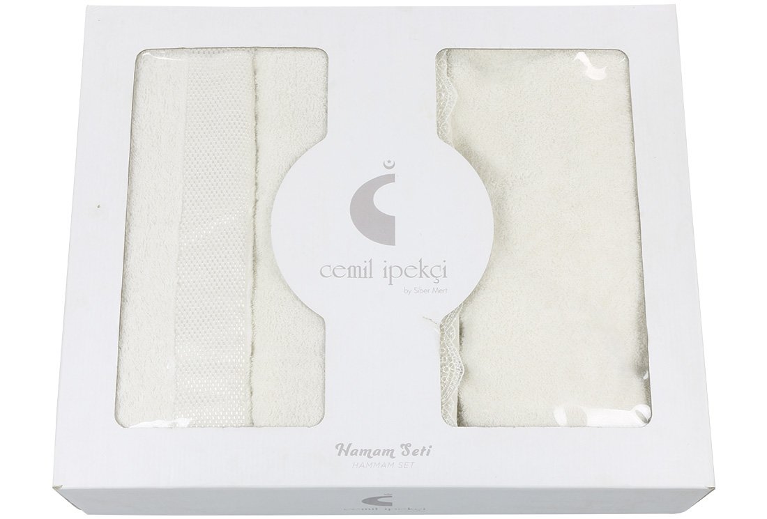 Teslimat ve Boyutlar: 1 x Cemil İpekçi Arella Güpürlü Hamam Seti | 4 Parca | Banyo Seti | Krem | 7833