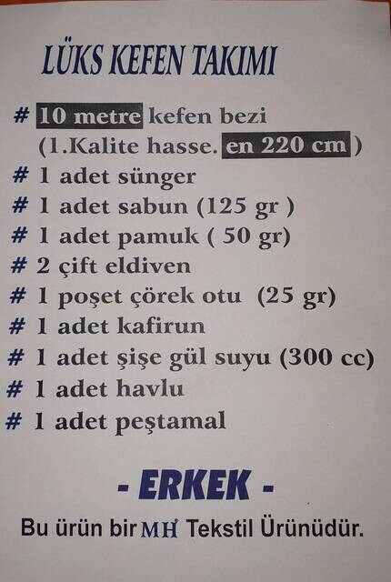 Buna dair başka bağlantılar "Cenaze Levazımatı Erkek 220 X 10"