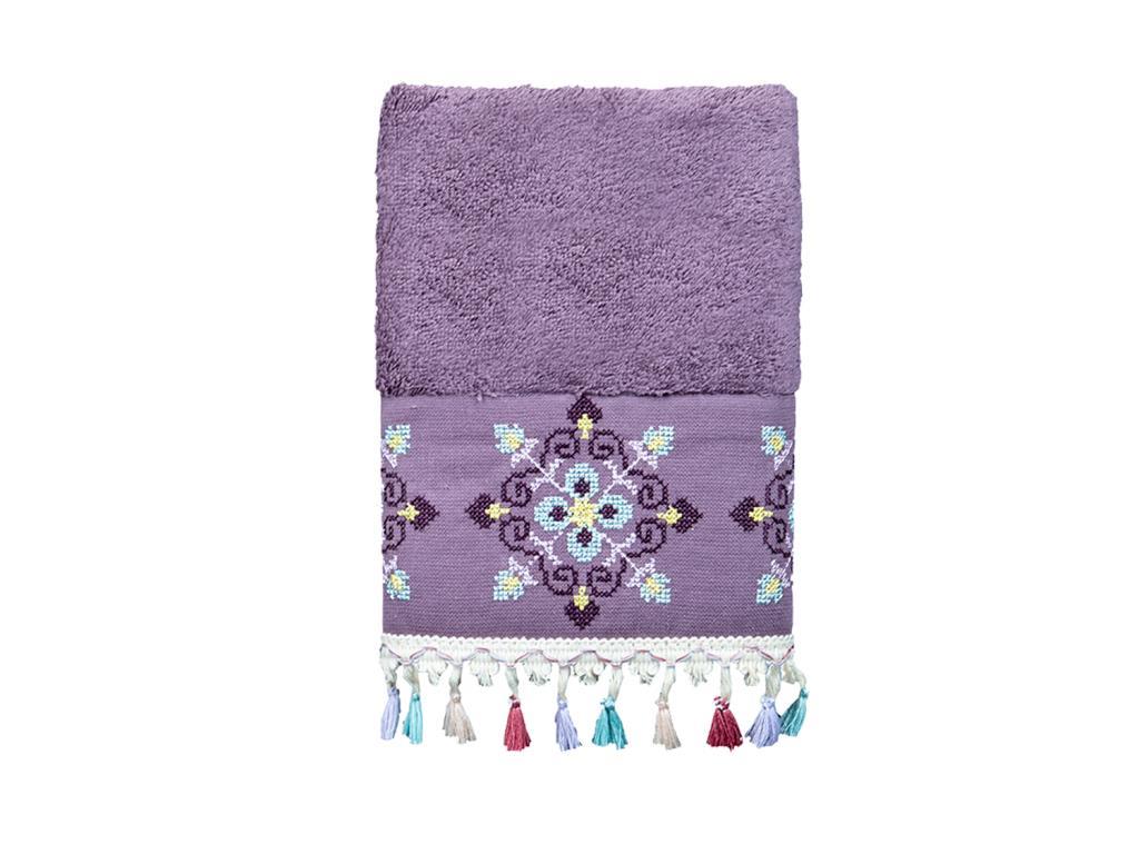 Havlu Üzerine Kanaviçe Nakış ve Püsküller İle Şık Bir Desen Oluşturulmuştur.