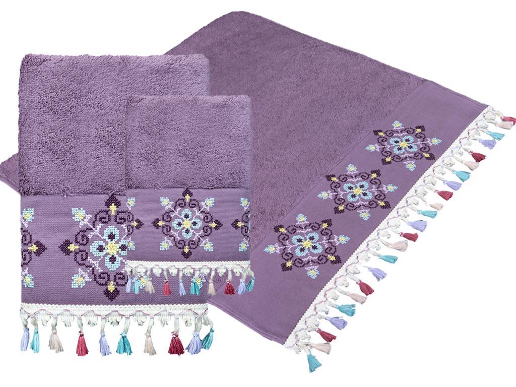 Ürün Adı: "Çeyiz Diyarı Umay 3 Parça Havlu Takımı Mürdüm"