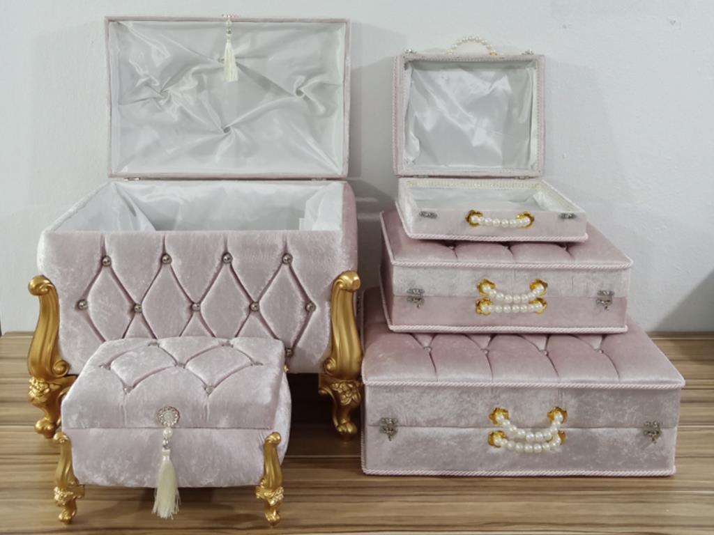 Ürün Adı: "Avangarde Lüx 5 Li Çeyiz Sandık Takımı Pudra"