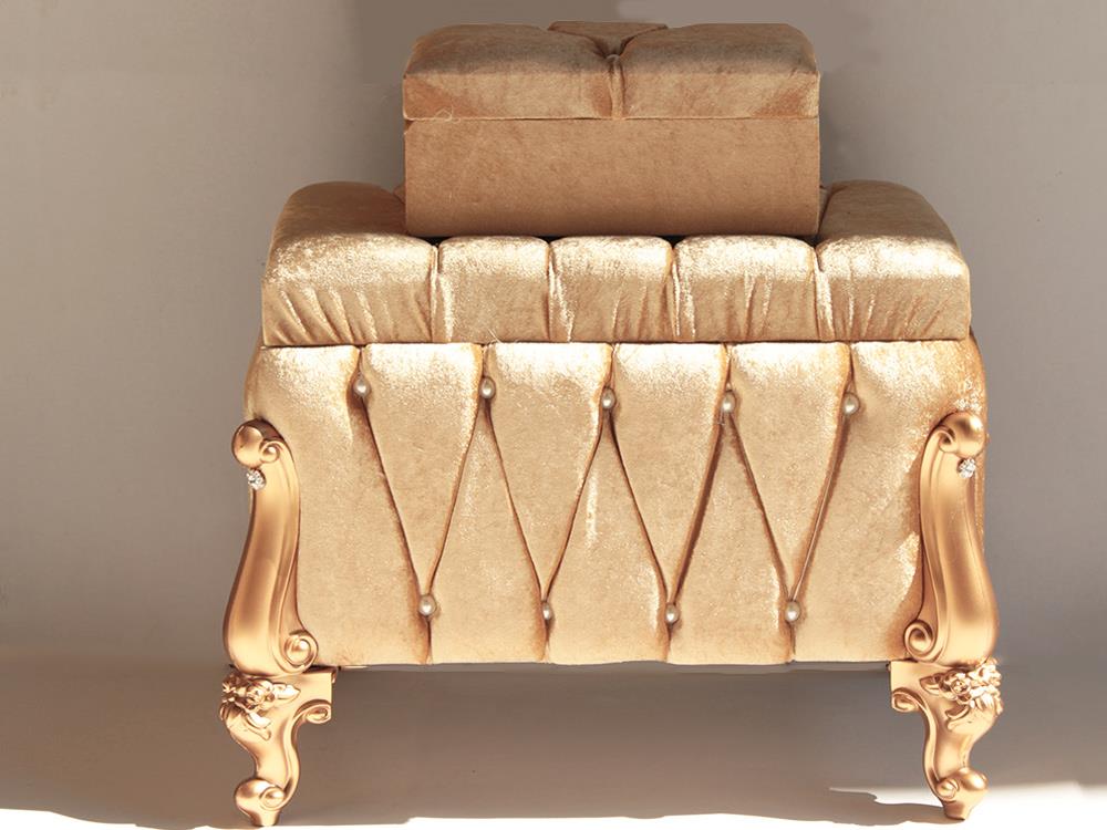 Kadife kumaş giydirmeli ahşap malzemeden üretilmiştir. Fransız dantel , gül buketi ve inci süslemesi ile özel bir tasarım oluşturulmuştur. Ürün içerisinde ayaklıkları mevcuttur.