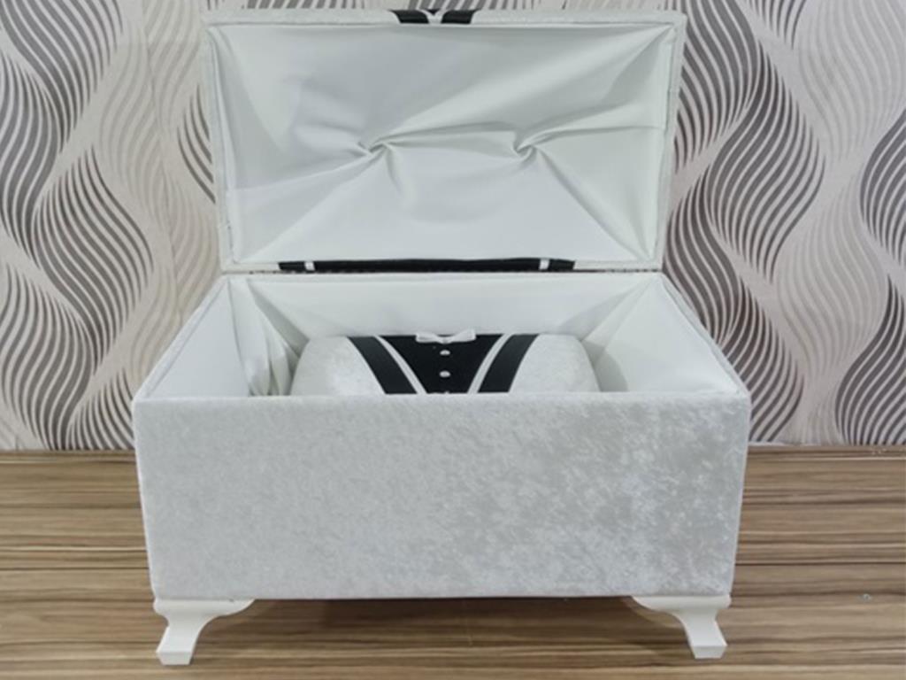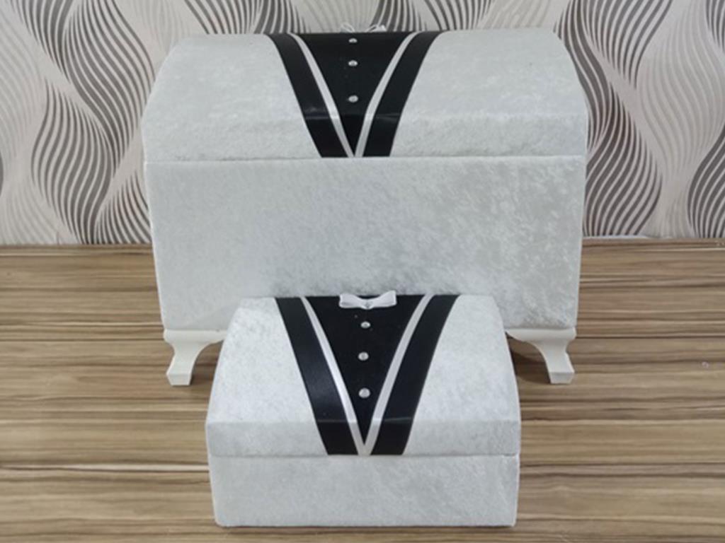 Ürün Adı: "Damat Figürlü Bombeli Sade 2 Li Çeyiz Sandığı Beyaz"