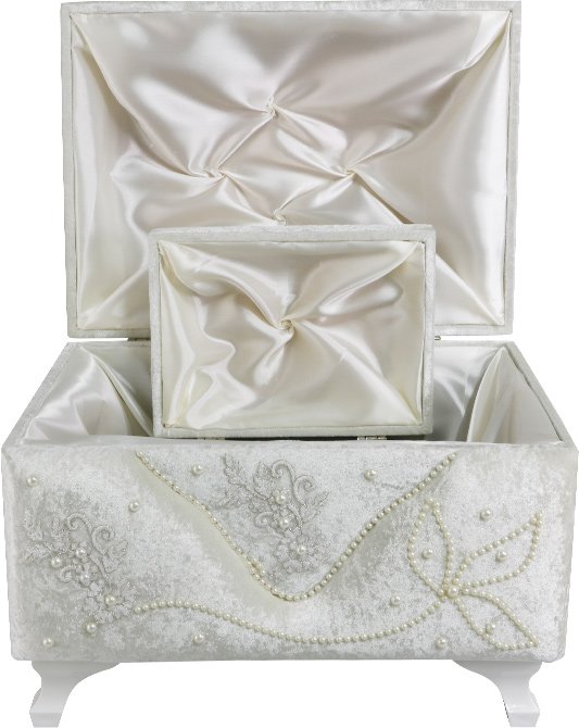 Teslimat: 1x Dekonaz 2'li Çiçek Desenli İnci Süslemeli Çeyiz Sandığı | Bej | Dts-145-c
