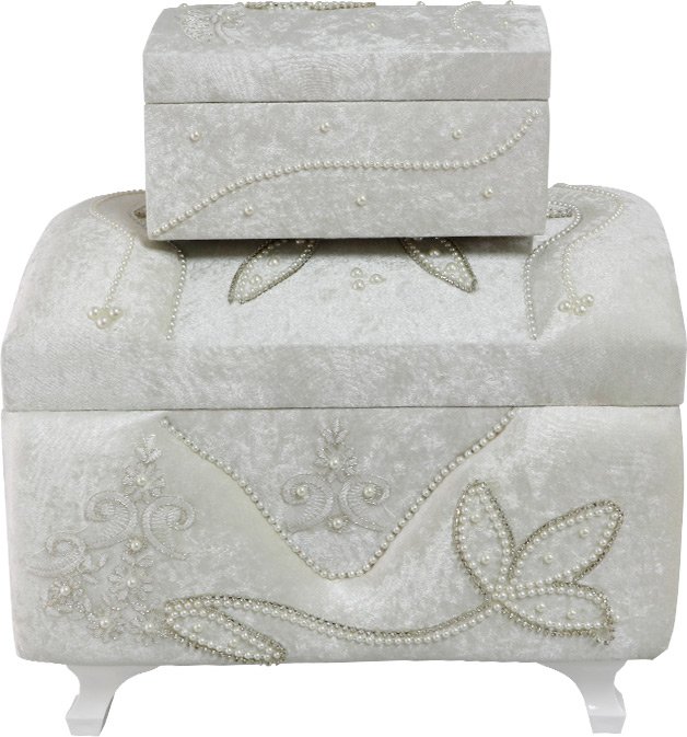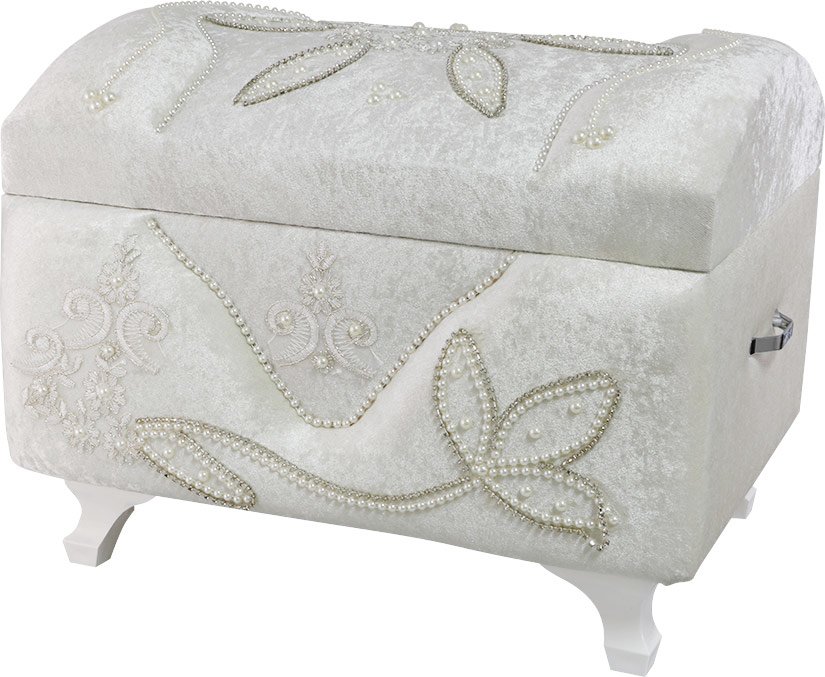 Teslimat ve Boyutlar: 1 x Dekonaz İnci İşlemeli Çeyiz Sandığı Kreme | Dt-001