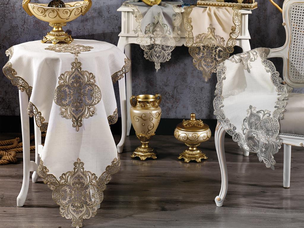 Tual Salon Takımı, Fransız güpür dantel detaylara sahip olan özel tasarım ürünüdür. Keten kumaştan üretilmiştir.