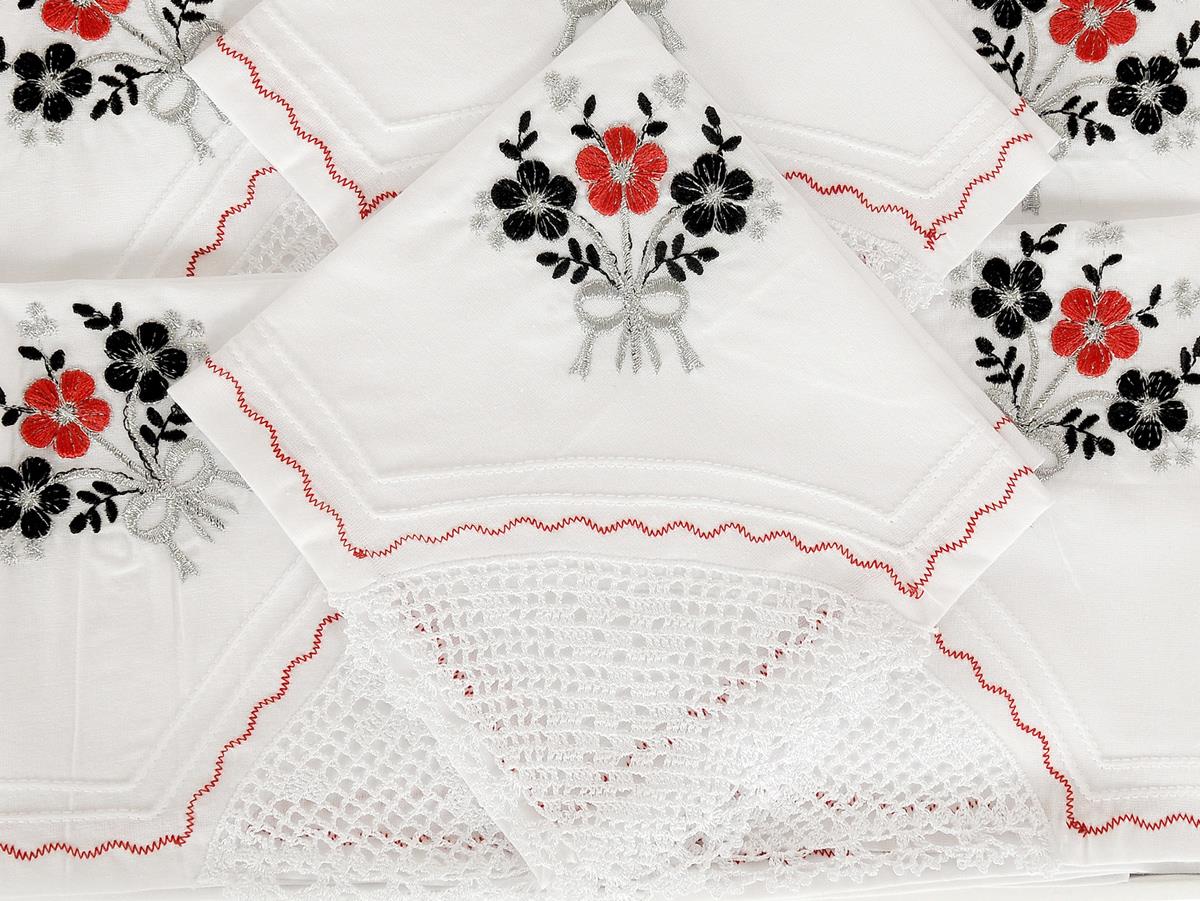 Ürün Adı: "Çeyizlik El İşi Dantel Mutfak Takımı Clove Siyah Kırmızı"
