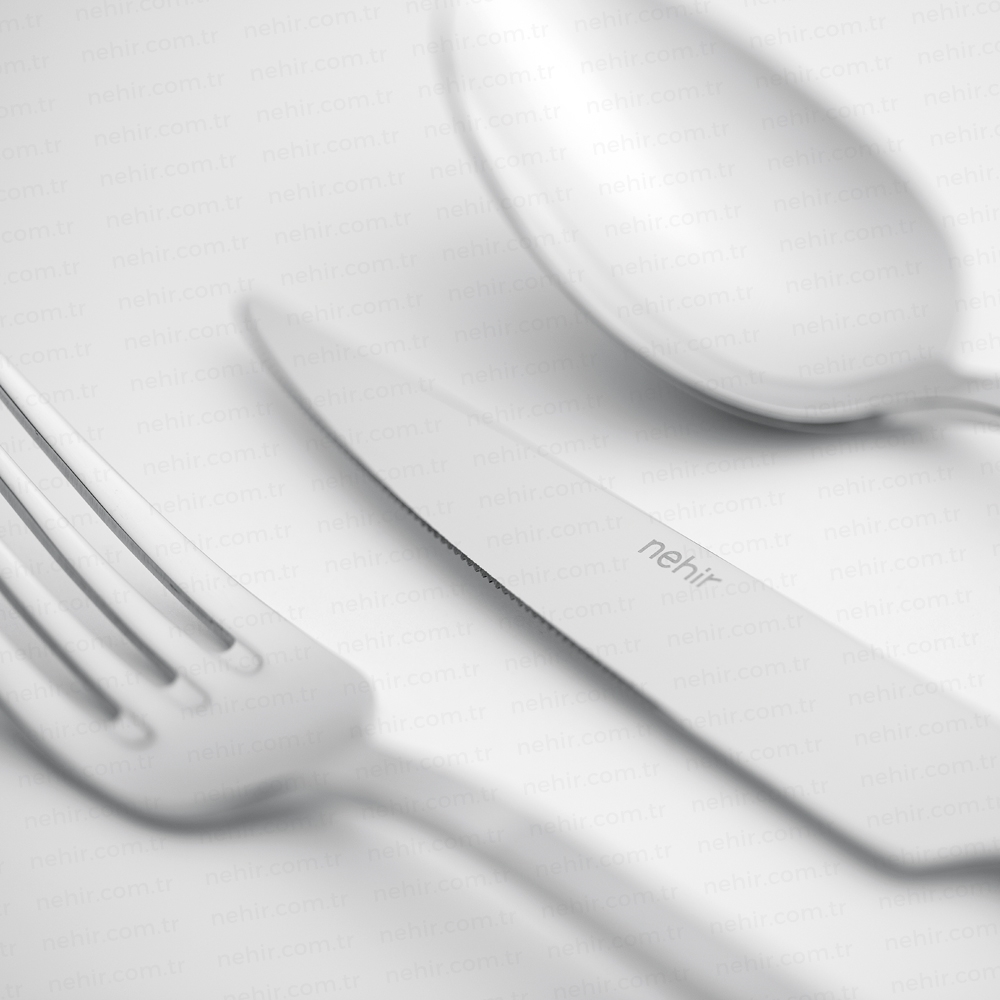 * Tüm Nehir çatal kaşık bıçak takımları 18/10 Cr-Ni paslanmaz çelik kullanılarak üretiliyor.