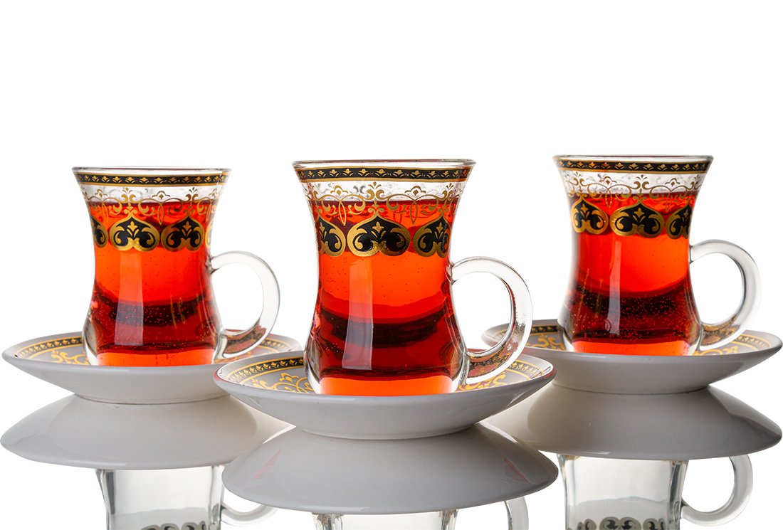 Teslimat : 1 x Dekonaz 12 Parça Kulplu Çay Bardağı Seti / Dekonaz 6'lı Çay Kaşığı Hediyeli | GP-0031