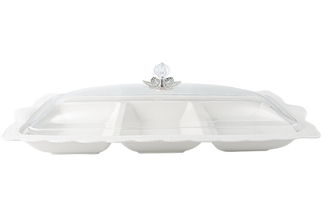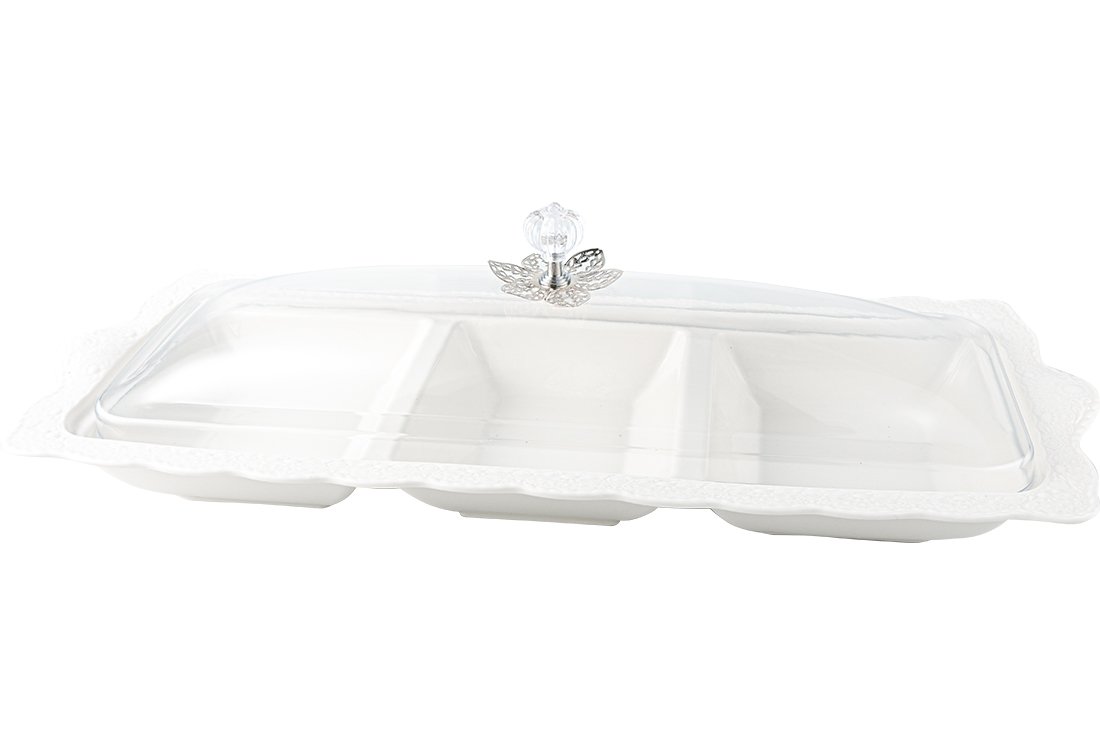 Dekonaz 3 Bölmeli Kapaklı Çerezlik Kahvaltı Tabağı | Gp-0041