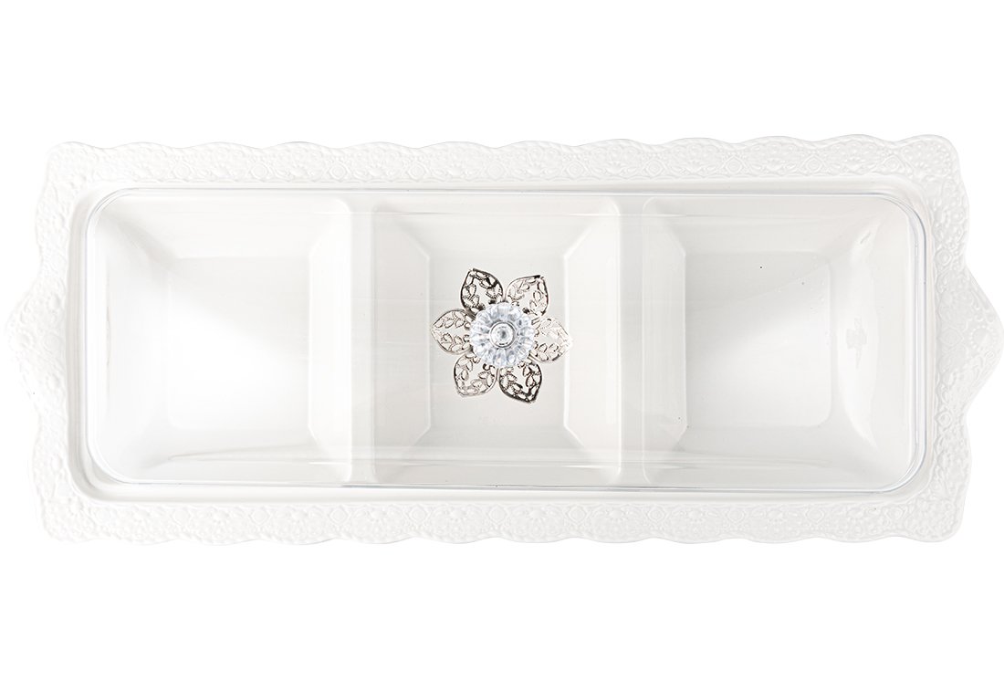 Teslimat ve Boyutlar: 1x Dekonaz 3 Bölmeli Kapaklı Çerezlik Kahvaltı Tabağı | Gp-0041