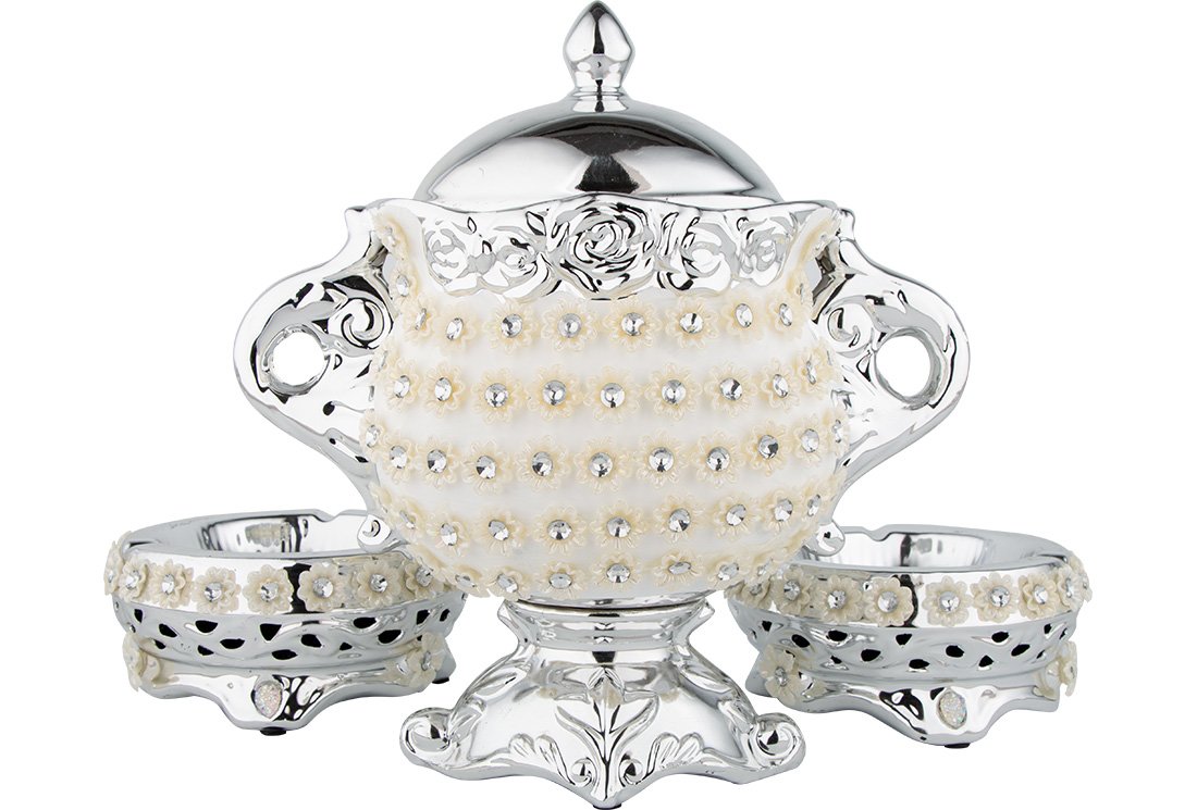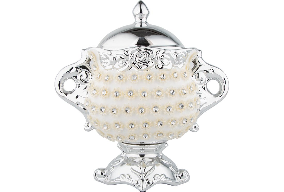 1x Seramik Dekoratif Ayaklı Kapaklı Şekerlik | Yükseklik: 28cm | En: 27cm | Yaklaşık