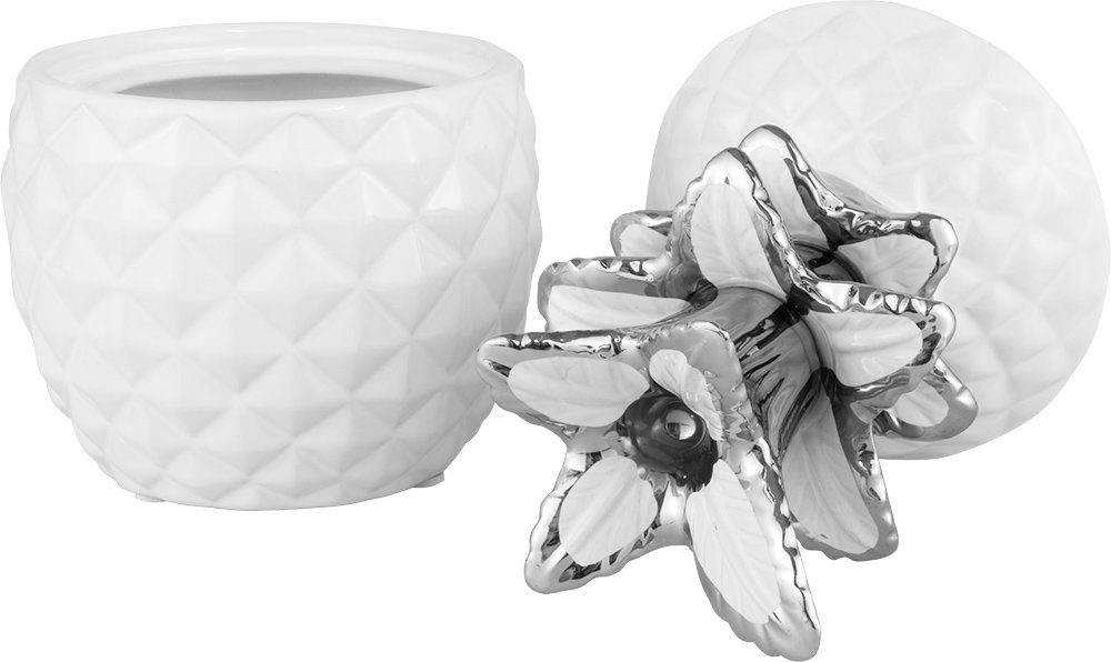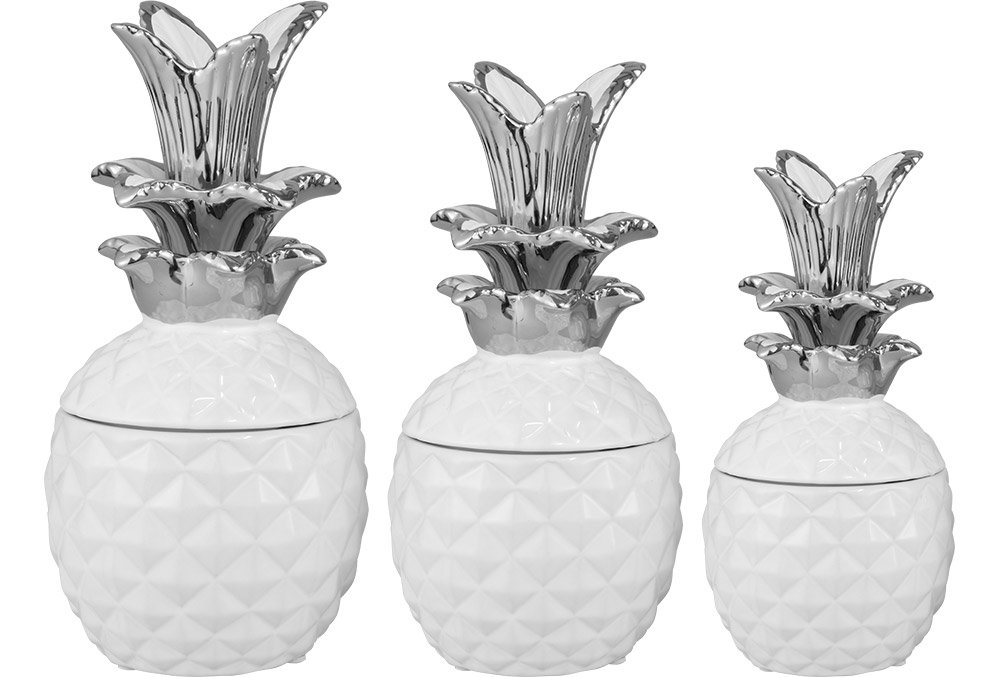 Teslimat ve Boyutlar: 1 x Dekonaz 3'lü Vazo Seti Ananas Şekil | Beyaz Gümüş | BC-9910-WHITE