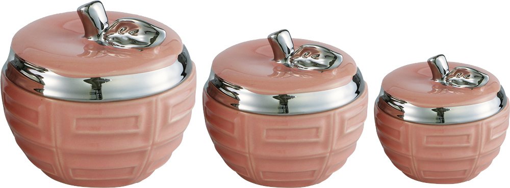 Teslimat ve Boyutlar: 1 x Dekonaz 3'lü Vazo Seti Elma Şekil | Pembe Gümüş | BC-9912-PINK