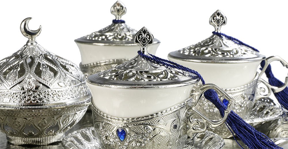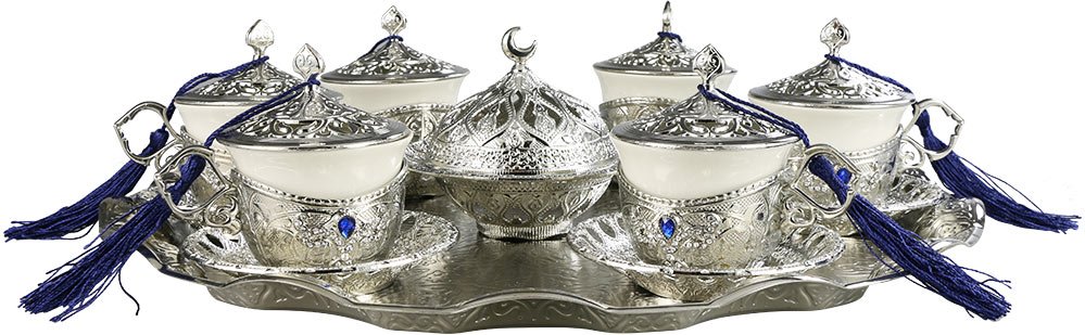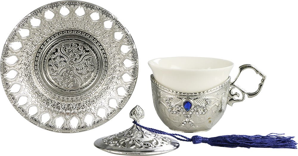 Teslimat: 1x Dekonaz | 34 Parça 6 Kişilik Gümüş Osmanlı Kahve Fincan Seti