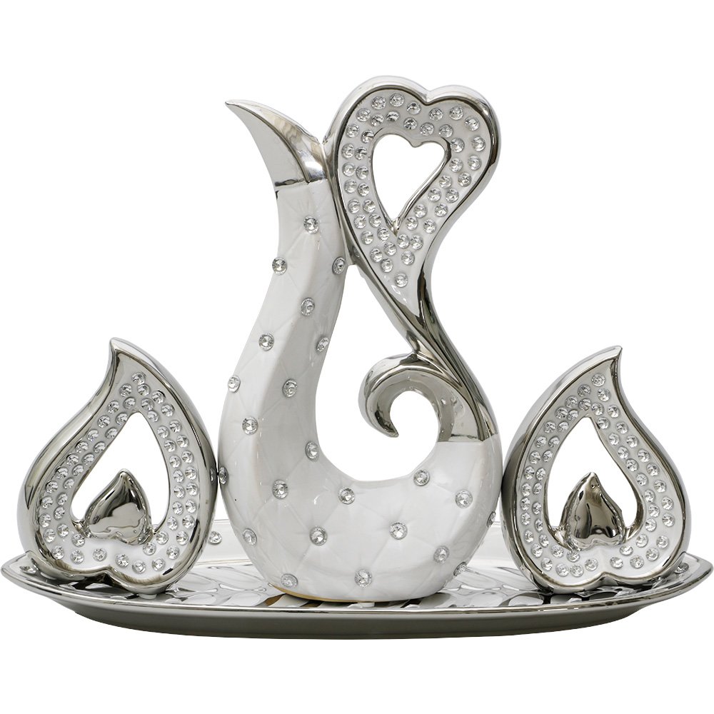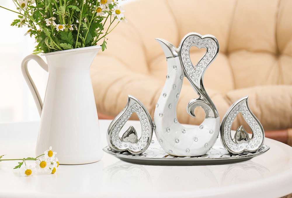 Teslimat ve Boyutlar: 1 x Dekonaz 4 Parça Taşlı Biblo Seti - Beyaz