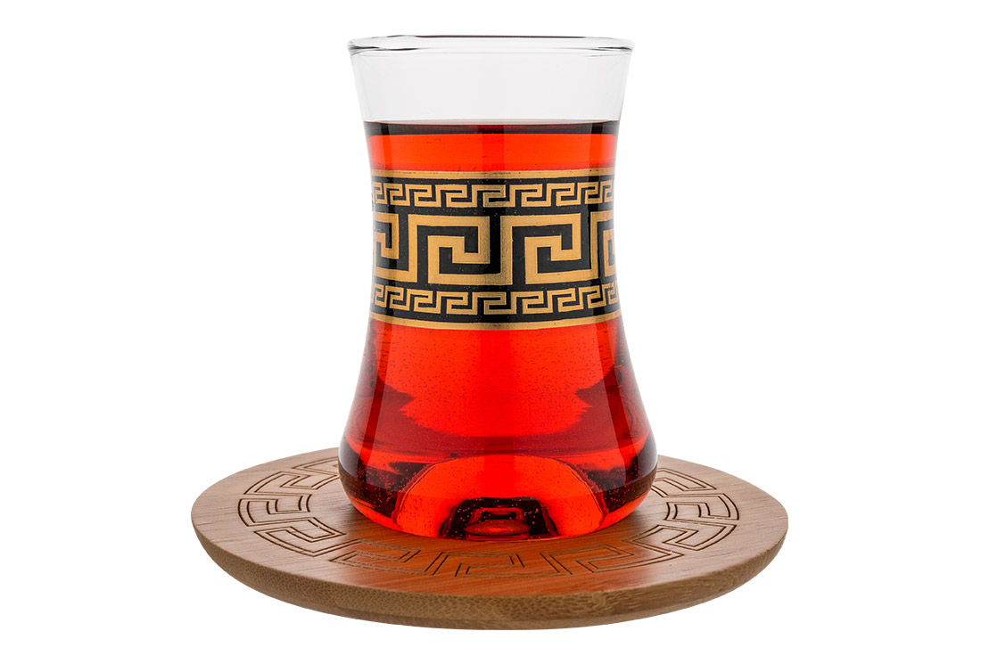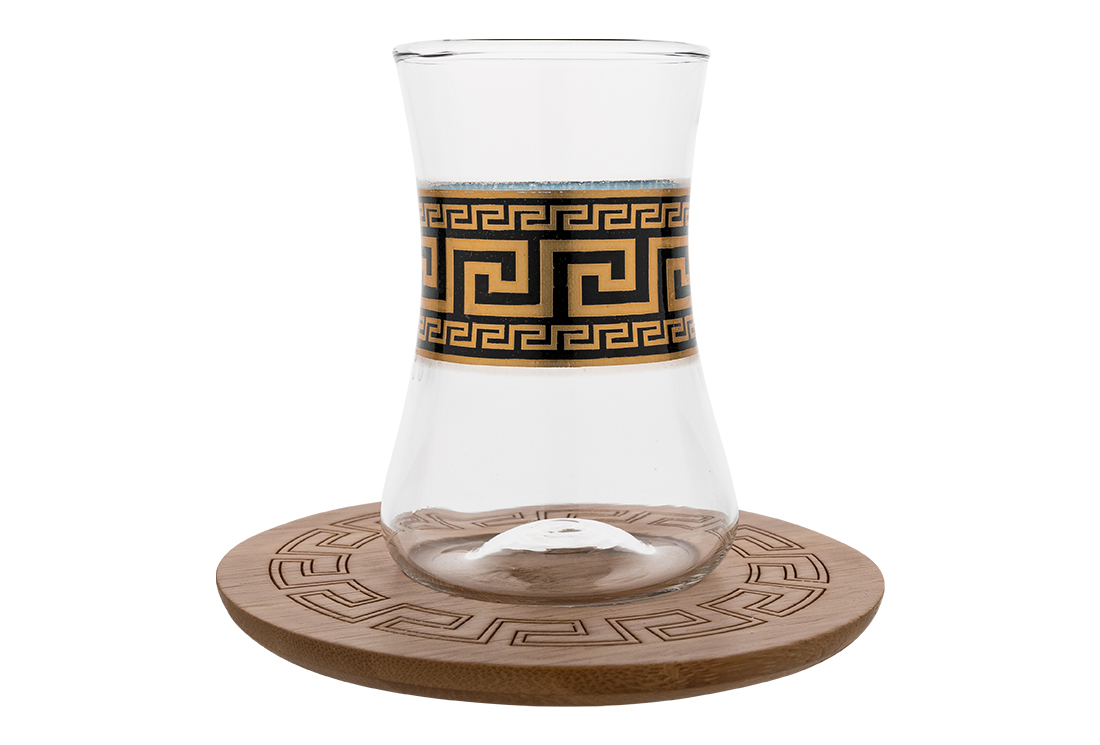 Teslimat ve Boyutlar: 1 x Dekonaz | 6'lı Çay Bardağı Seti | 12 Parça | Alaturka | Cam Bardak | Bambu Bardakaltı | Gp-0083