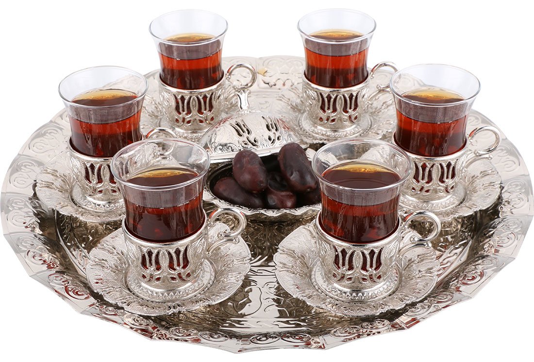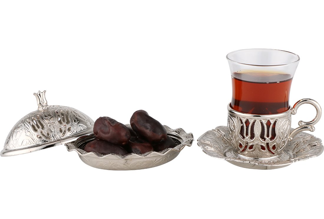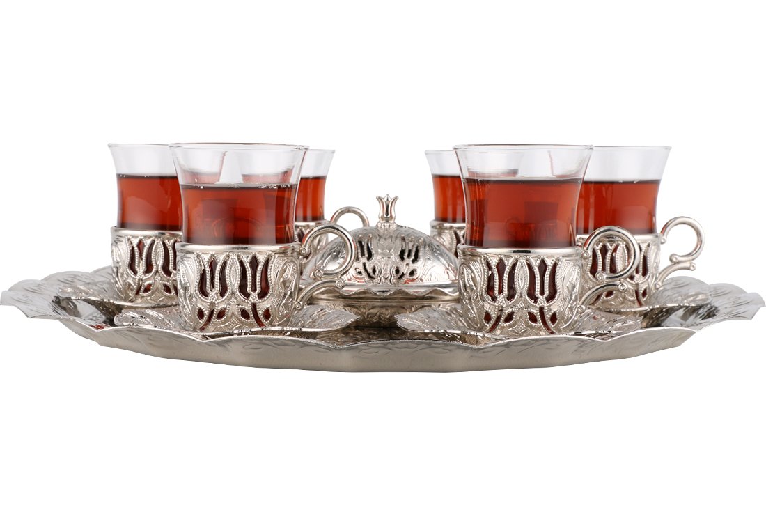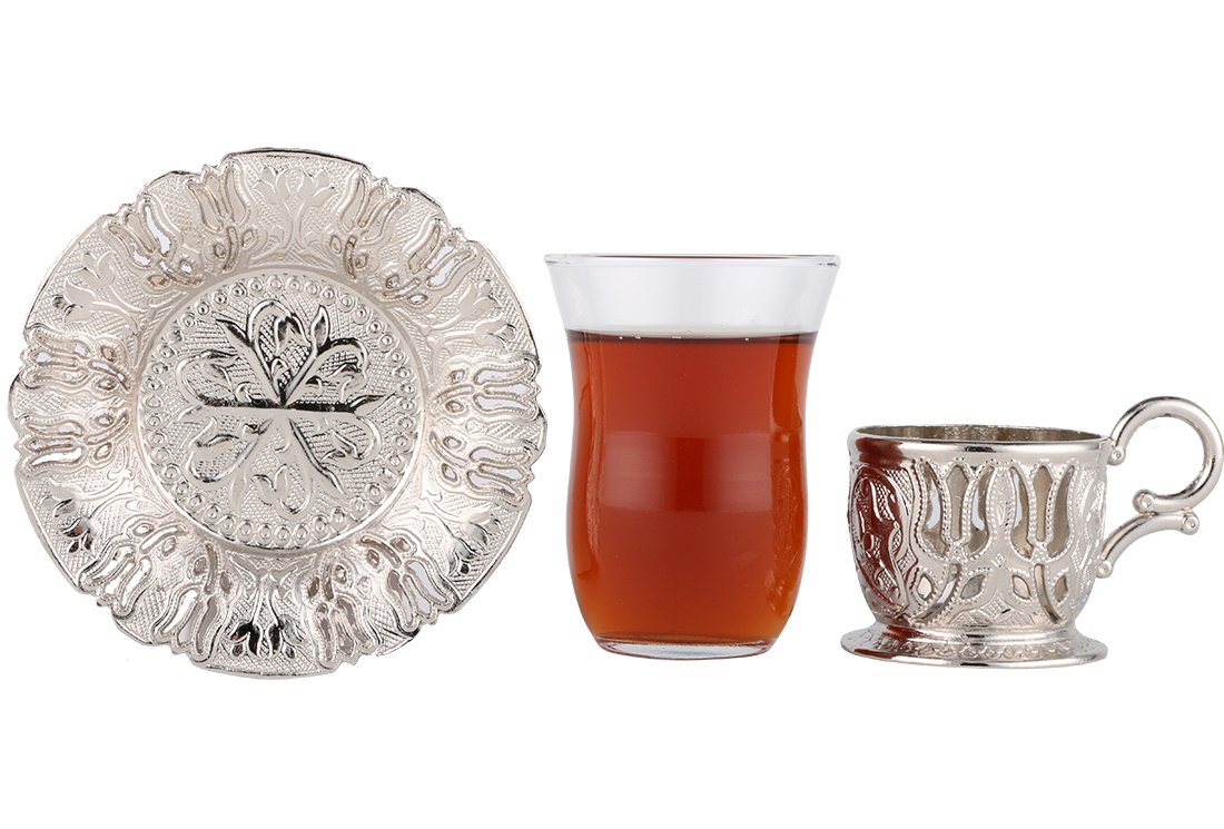 Teslimat: 1x Dekonaz 6'lı Osmanlı Çay Seti | 15 Parça | Gümüş | Hc026