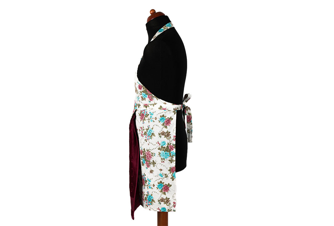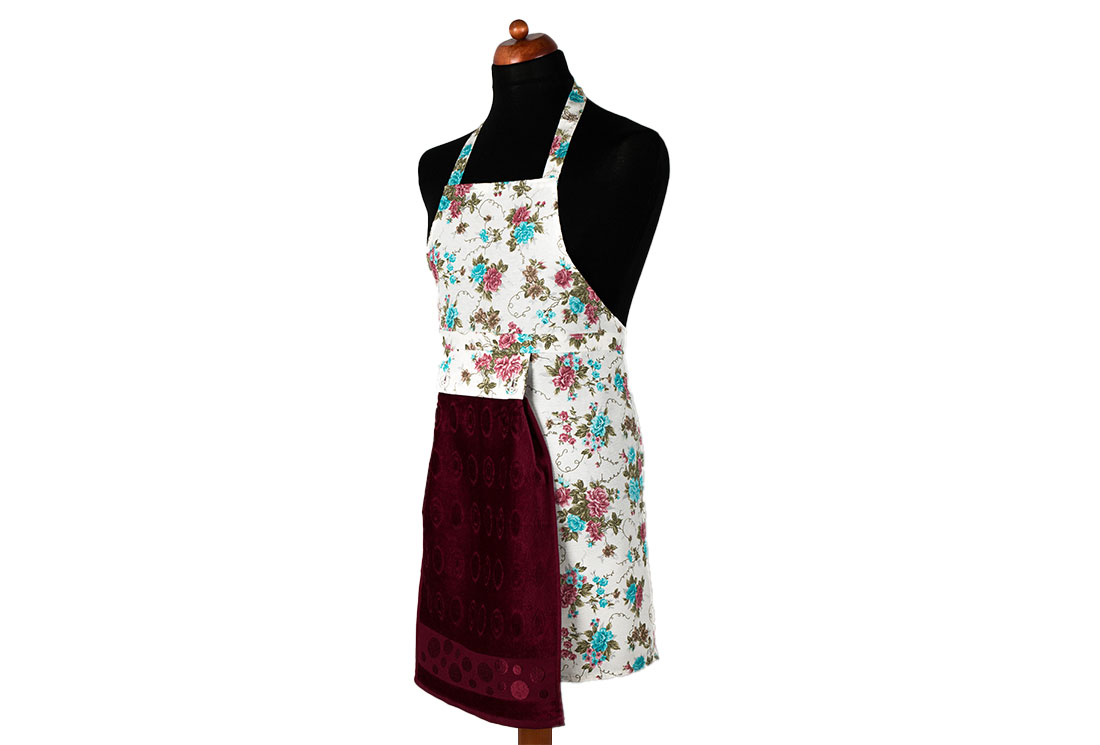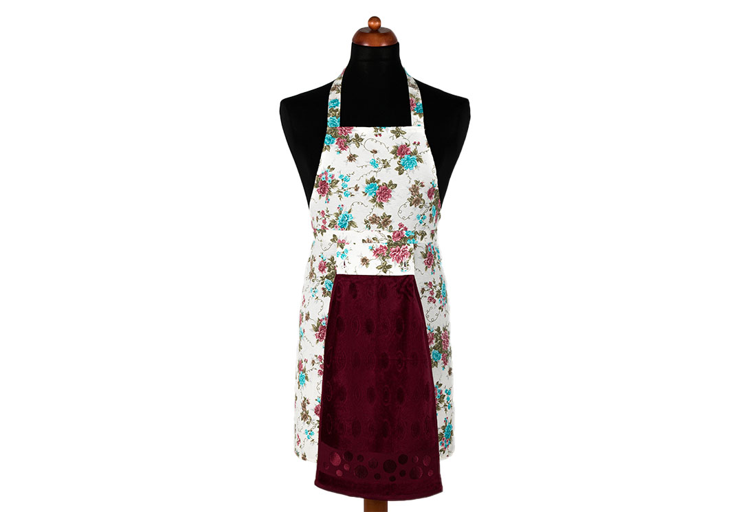 Teslimat ve Boyutlar: 1x Dekonaz Çiçek Desenli Mutfak Önlüğü | Bordo Havlu ve El Bezi Hediyeli | 73cm x 59cm