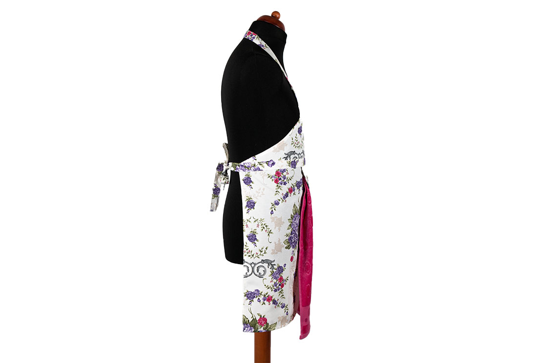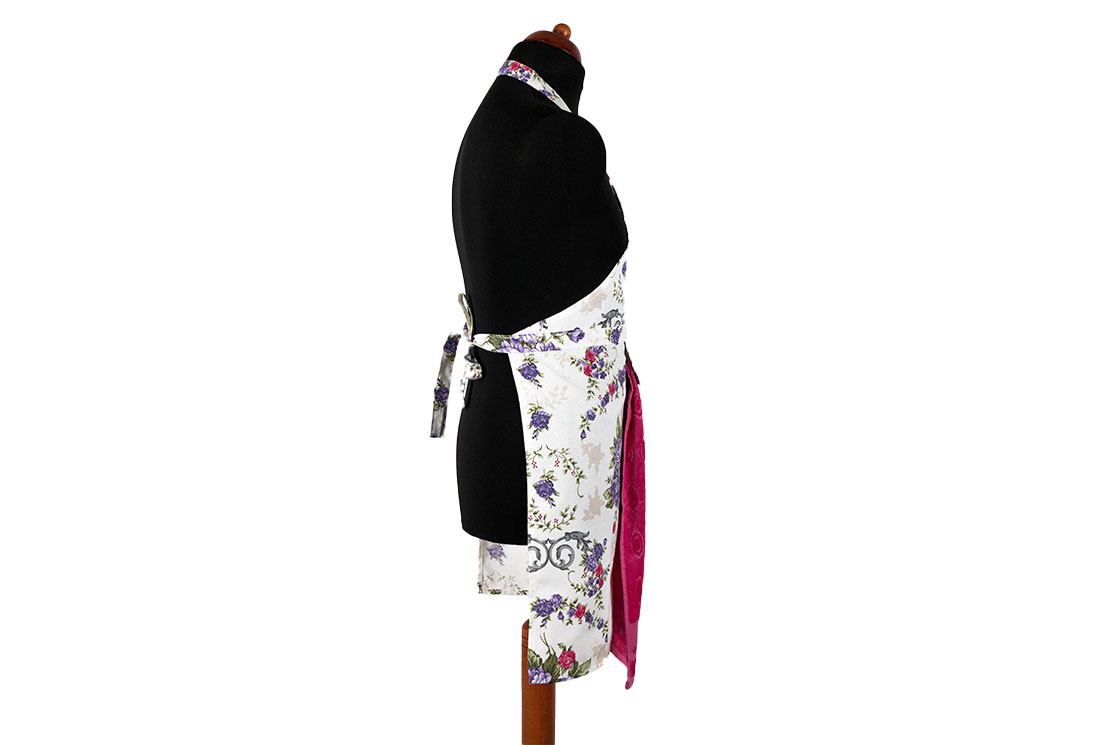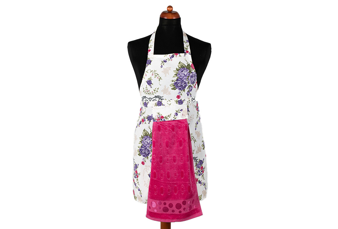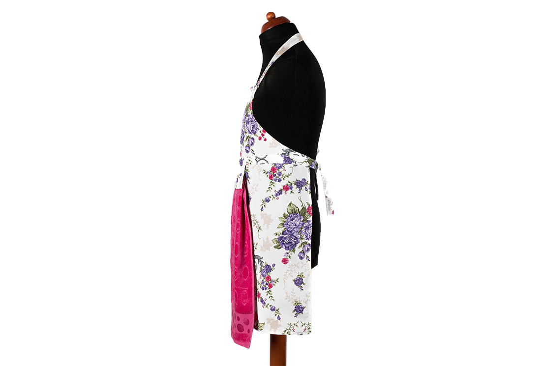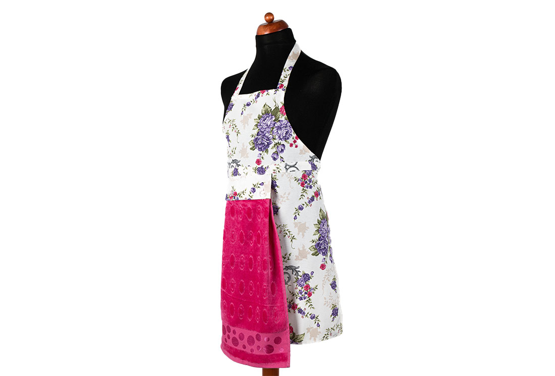 Teslimat ve Boyutlar: 1x Dekonaz Çiçek Desenli Mutfak Önlüğü | Fuşya Havlu ve El Bezi Hediyeli | 73cm x 59cm