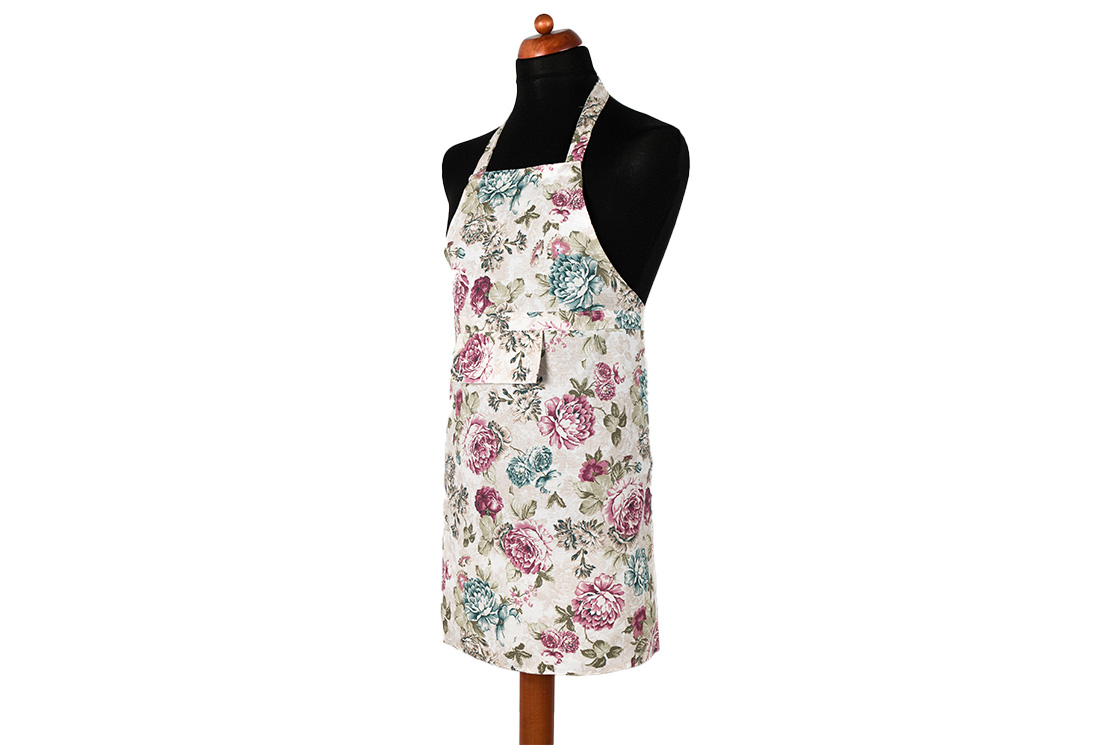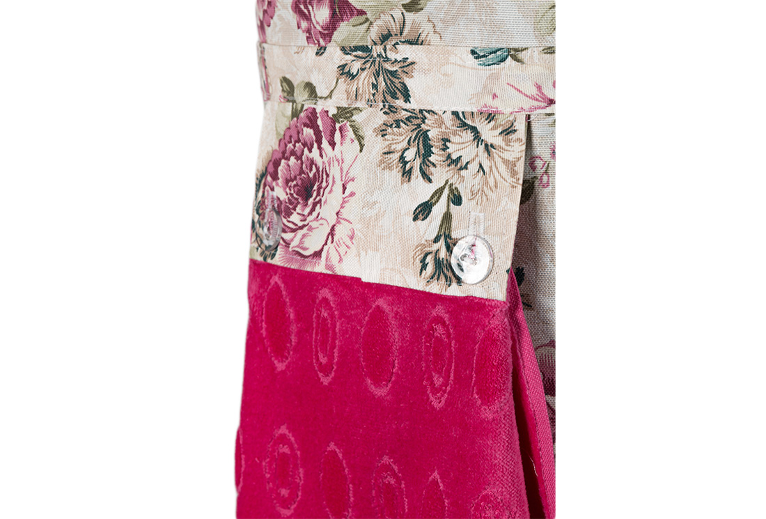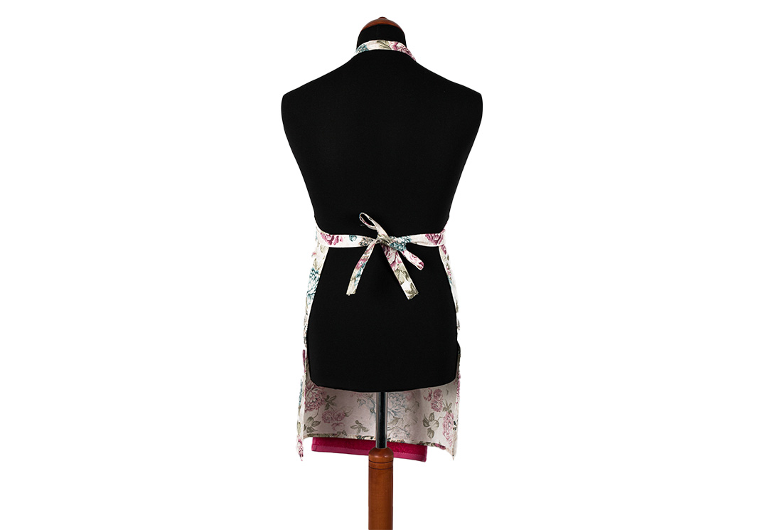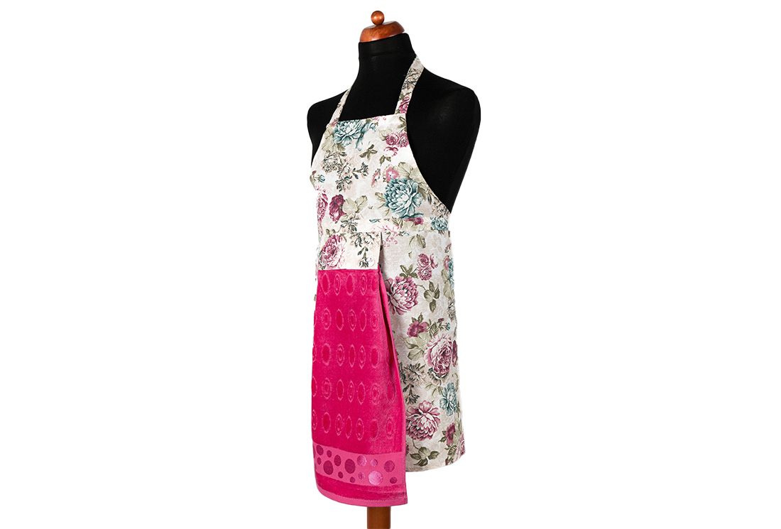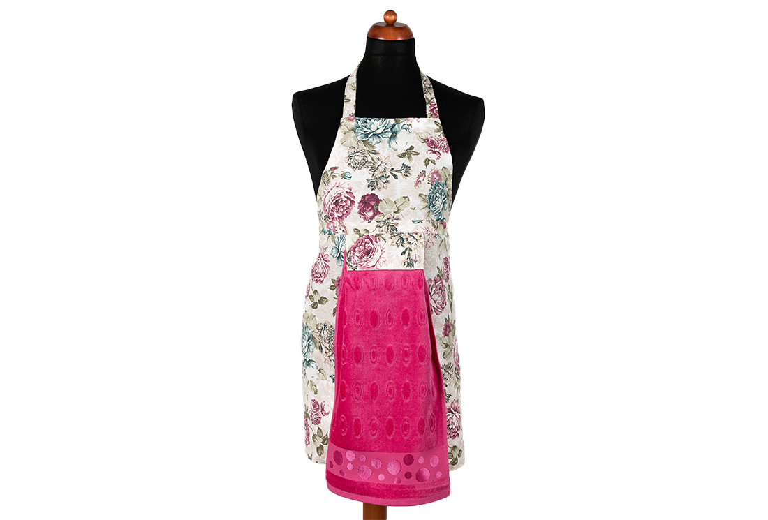Teslimat ve Boyutlar: 1x Dekonaz Çiçek Desenli Mutfak Önlüğü | Fuşya Havlu ve El Bezi Hediyeli | 73cm x 59cm