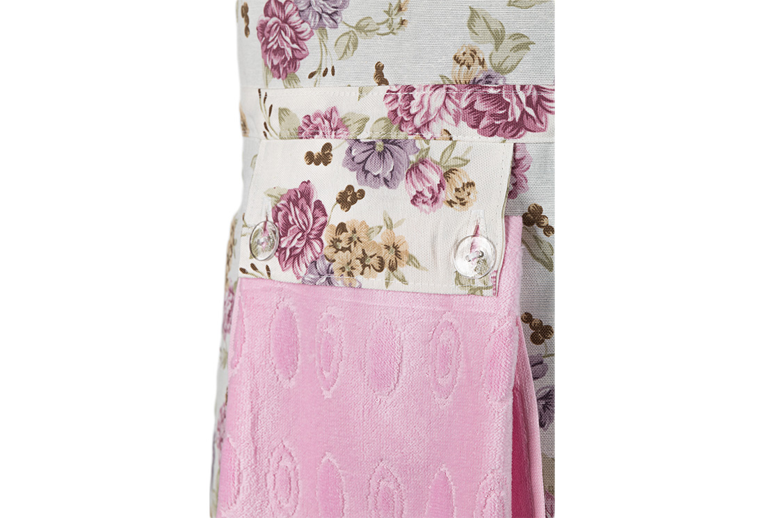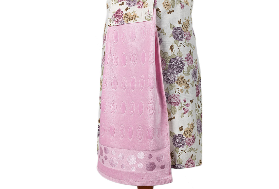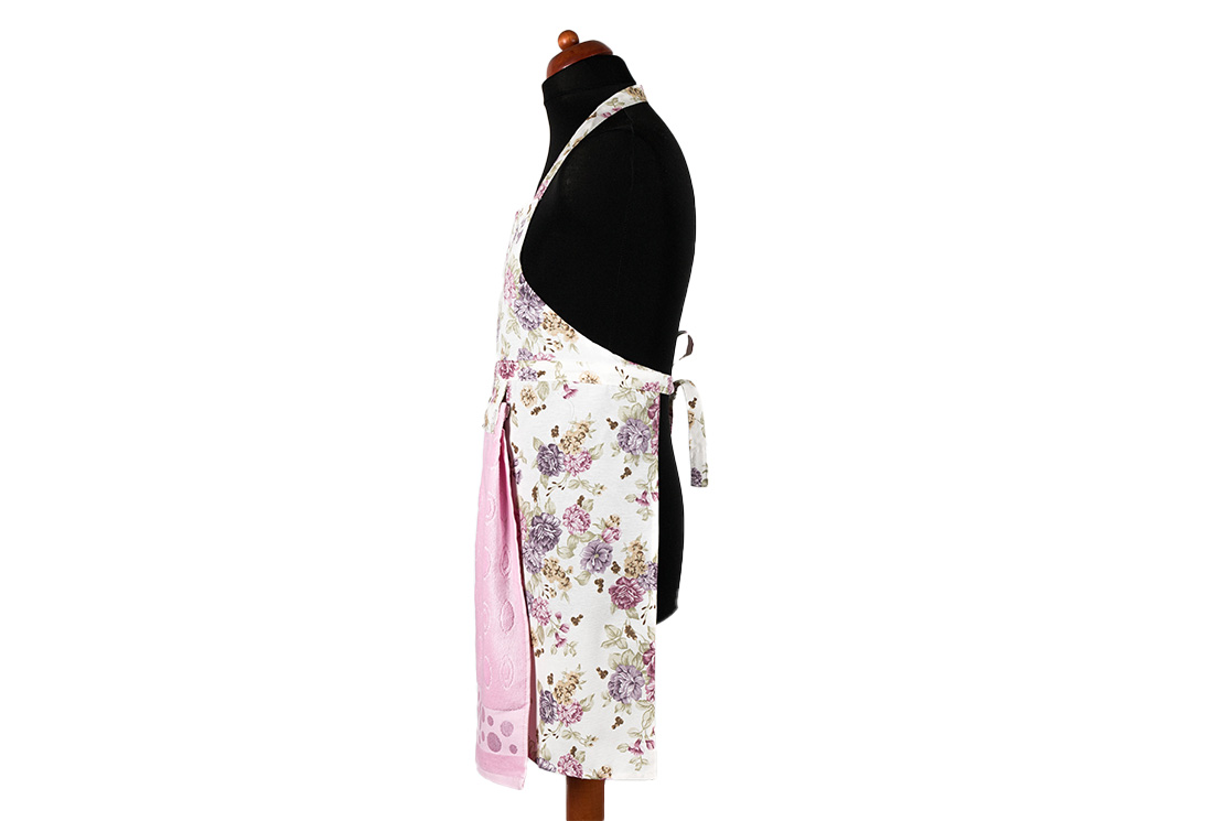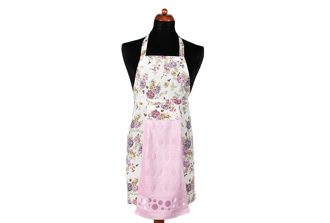 Teslimat ve Boyutlar: 1x Dekonaz Çiçek Desenli Mutfak Önlüğü | Pembe Havlu ve El Bezi Hediyeli | 73cm x 59cm