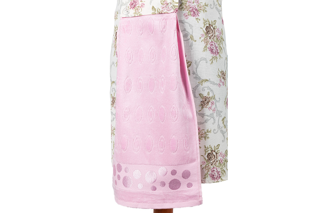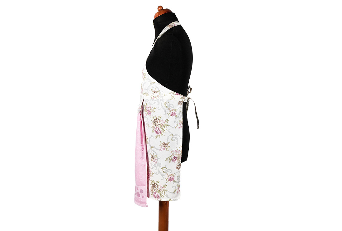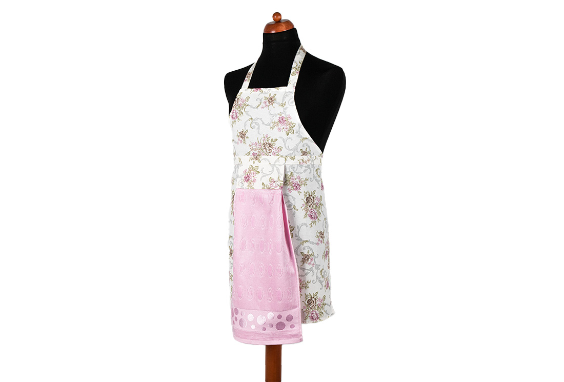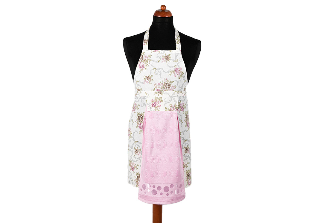 Teslimat ve Boyutlar: 1x Dekonaz Çiçek Desenli Mutfak Önlüğü | Pembe Havlu ve El Bezi Hediyeli | 73cm x 59cm