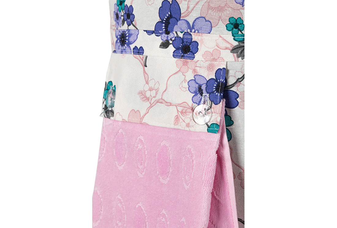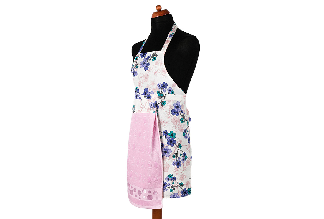 Teslimat ve Boyutlar: 1x Dekonaz Çiçek Desenli Mutfak Önlüğü | Pembe Havlu ve El Bezi Hediyeli | 73cm x 59cm