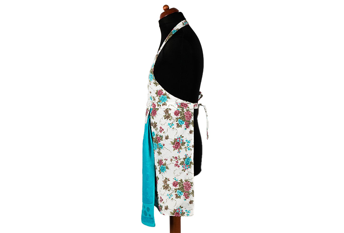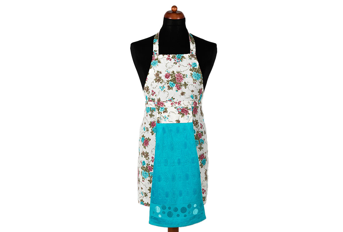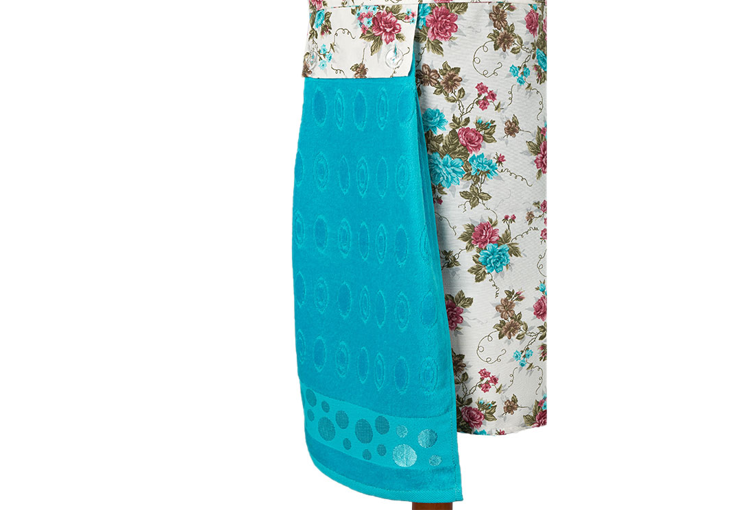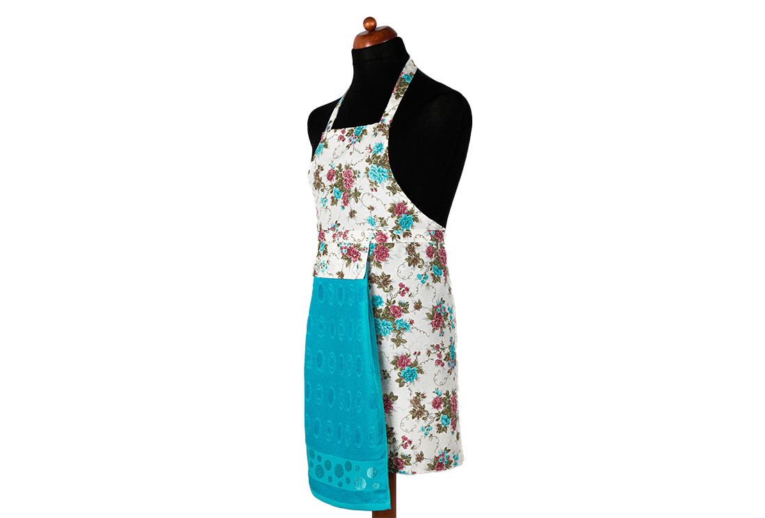Teslimat ve Boyutlar: 1x Dekonaz Çiçek Desenli Mutfak Önlüğü | Turkuaz Havlu ve El Bezi Hediyeli | 73cm x 59cm