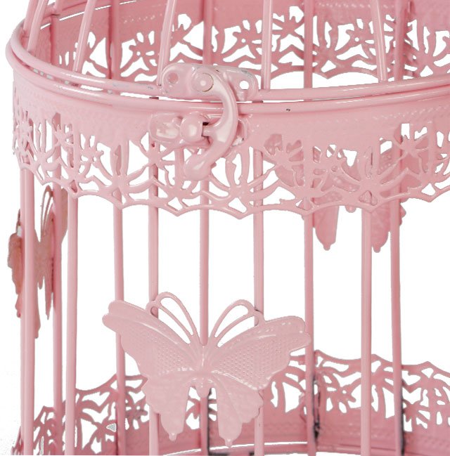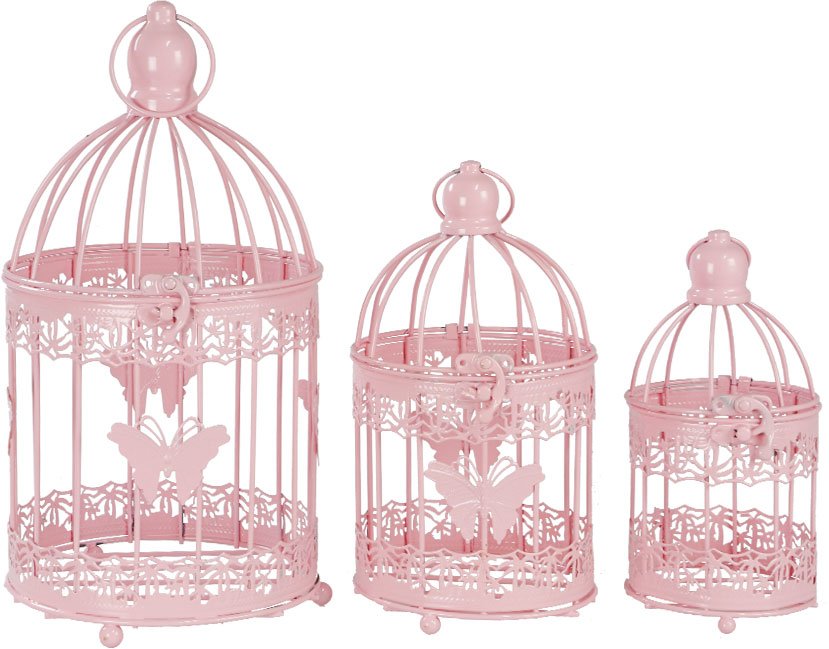 Teslimat ve Boyutlar: 1 x Dekonaz Dekoratif 3'lü Kuş Kafesi Kelebek Motifli | Metal | Pembe | KK-3p