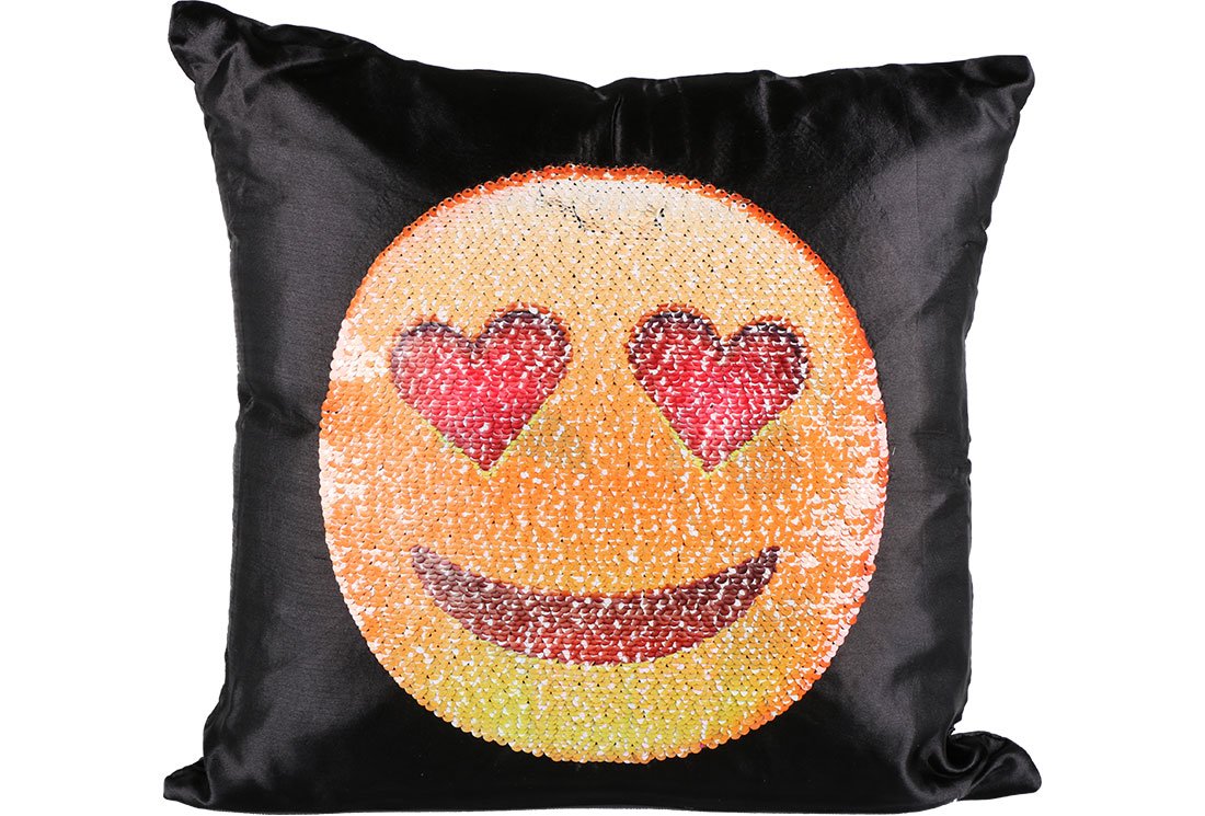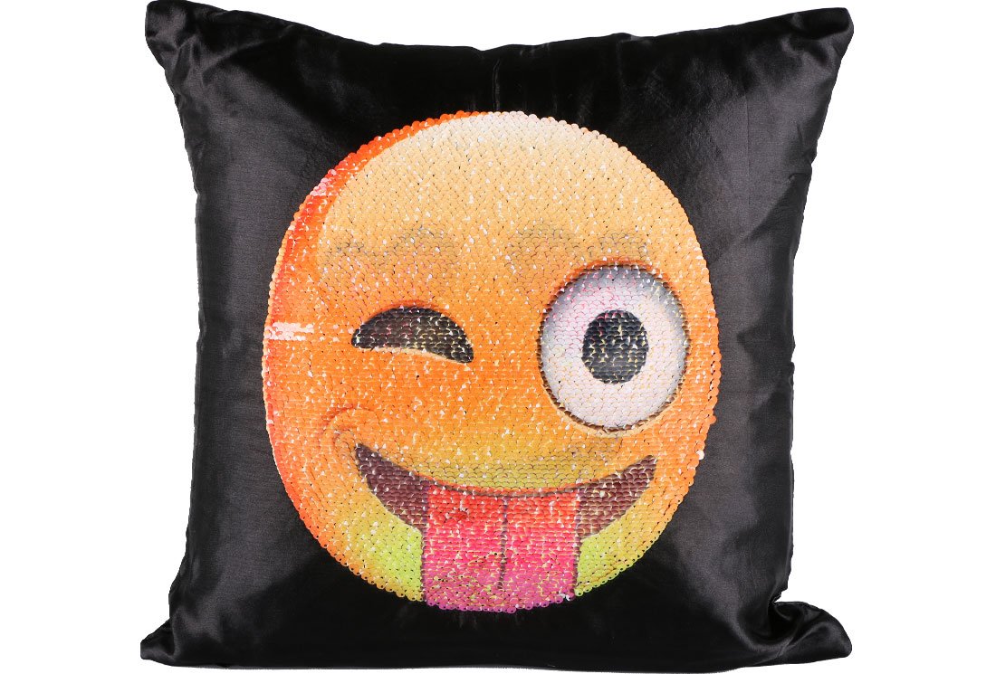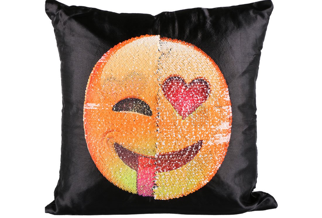 Teslimat ve Boyutlar: 1 x Dekonaz Dekoratif Pullu Yastık 40x40cm | Gülümseyen Emoji | MTL-0011
