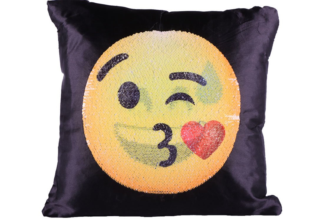 Teslimat ve Boyutlar: 1 x Dekonaz Dekoratif Pullu Yastık 40x40cm | Gülümseyen Kalpli Emoji | MTL-0005