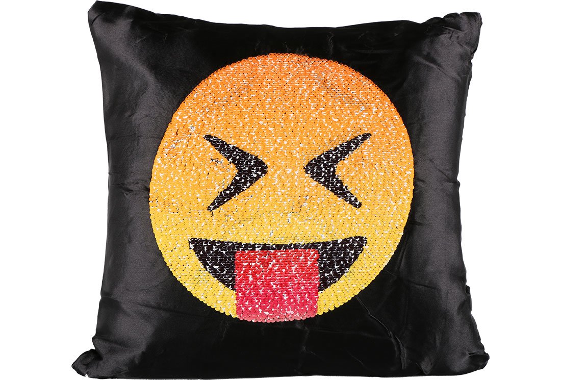 Teslimat ve Boyutlar: 1 x Dekonaz Dekoratif Pullu Yastık 40x40cm | Kızgın Emoji | MTL-0004
