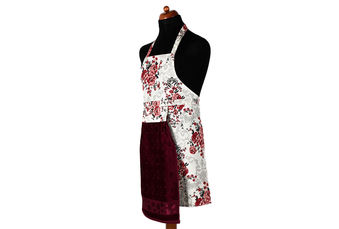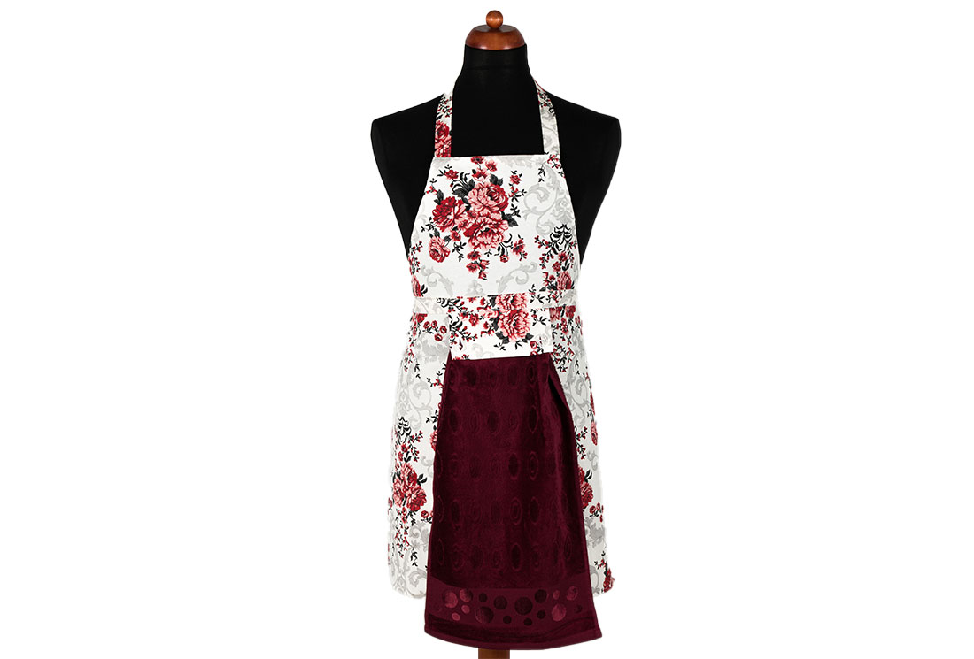Teslimat ve Boyutlar: 1x Dekonaz Gül Desenli Mutfak Önlüğü | Bordo Havlu ve El Bezi Hediyeli | 73cm x 59cm