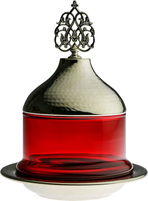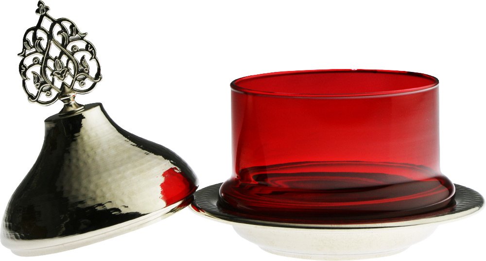 Teslimat: 1x Dekonaz Gümüş Tepsi ve Kapaklı Lokumluk / Şekerlik | Kırmızı | Sek-0006